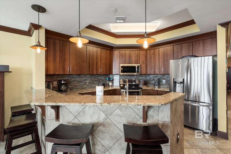 Experience elevated Gulf-front living at The Oasis in Orange Beach where luxury, location, and livability meet. This beautifully upgraded 10th-floor condo features covered garage parking on the same level, offering unmatched convenience and eliminating elevator delays. With nearly 2,000 square feet, this spacious 3-bedroom, 4-bath layout is ideal for hosting family, friends, or maximizing short-term rental income potential estimated at $90K annually with current management. Inside, you'll appreciate tall custom kitchen cabinets that add style and function, cabinetry at the wet bar, and custom blinds throughout for enhanced privacy and comfort. The foyer greets you with elegant custom tile work, setting the tone for the rest of the thoughtfully designed interior. Few condos offer four full bathrooms, making this floor plan especially versatile for a range of sleeping arrangements and guest stays. Step out onto the expansive balcony to enjoy sweeping Gulf views or explore the array of resort-style amenities including a lazy river, indoor and outdoor pools, waterslide, splash pad, multiple hot tubs, BBQ/picnic area, tennis courts, arcade room, fitness center, and sauna. Whether you're looking for a second home, income-producing property, or a luxurious coastal retreat, The Oasis is a property to be proud of. Buyer to verify all information during due diligence. Buyer to verify all information during due diligence.