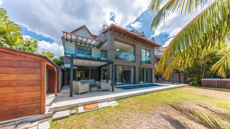 Welcome to a rare gem nestled in the heart of a prestigious marina, where luxury meets nature. This magnificent, fully furnished apartment spans a remarkable layout with four ensuite bedrooms, ensuring privacy and comfort for each guest or family member. The expansive entertainment area flows seamlessly to a grand 60m² covered veranda—a perfect setting for both intimate gatherings and sophisticated soirées. Outdoors, a spacious front garden and a pristine 16m² pool await, offering serene, unobstructed views over the river and lush mangrove forest. This carefully maintained sanctuary is designed for those who seek a harmonious blend of natural beauty and modern living. Residents enjoy exclusive access to two private covered parking spaces, priority access to a boat mooring and the opportunity to immerse in a vibrant marina community, ideal for socializing and networking. Embrace the rare opportunity to own an apartment that epitomizes refined waterfront living.