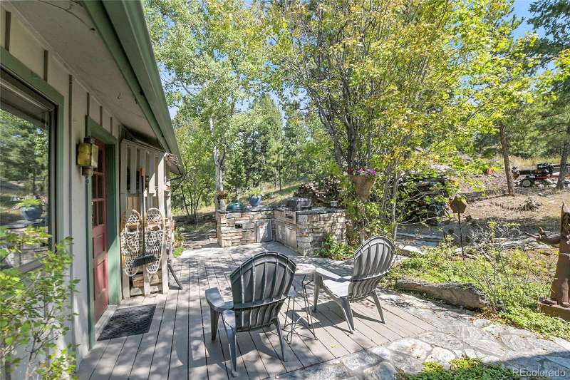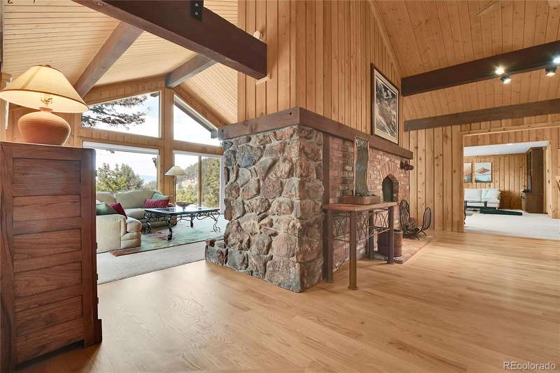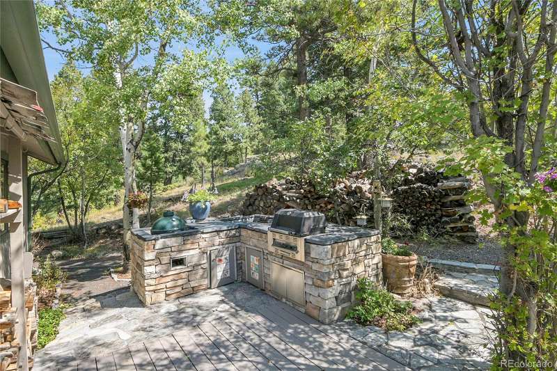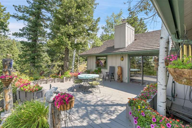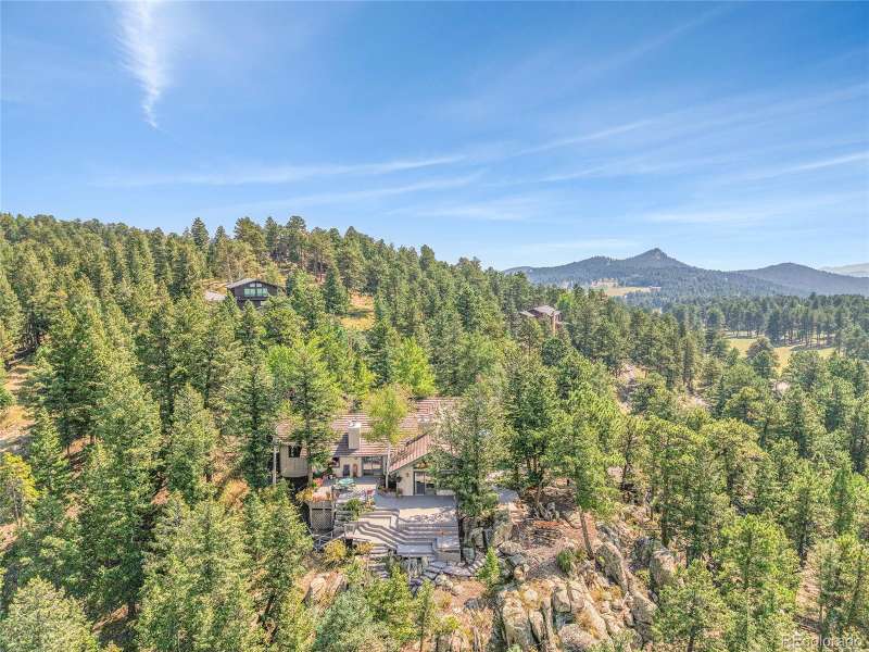 Looking for a home with incredible views that you will fall in love with-you will find it here! Astounding snowcapped mountain views from your own hilltop sanctuary immersed in nature with expansive outdoor space., fenced garden and privacy…this one is truly a rare find. Tucked into granite outcroppings, the home is masterfully positioned to capture panoramic vistas while offering unmatched privacy. The residence sits on 2.5 acres, with an option to also purchase the adjacent separately deeded 3.95-acre parcel (5447 Bear Mountain Drive) with seller financing-you can build, sell, or just enjoy the extra acreage. The possibilities are as wide as the views. Inside, find main level living & mountain charm. The center of this expertly crafted home is the spacious remodeled kitchen with alder cabinets and plentiful space to gather. Two living areas grace the home, with lofted & beamed living room that takes in the spectacular views. This home is a gardeners delight with sunroom, separate greenhouse & large fenced garden with irrigation. Outside, you'll discover what mountain living is all about: expansive decks perfect for stargazing & outdoor living and a BBQ & dining area. Wildflowers, rock formations, & endless sunshine create a tranquil outdoor haven you'll never want to leave. The driveway offers two parking areas with room for an RV, & the oversized garage has a workshop space. Storage is no problem with multiple storage areas and a great craft/workshop area. Excellent internet too. Wander your land, or head just half a mile to explore acres of rarely used public open space. And despite the privacy, you're only minutes to downtown Evergreen, the lake, shopping, dining, & endless trails for hiking, biking, and skiing. There are homes, & then there are places that feed your soul. This is one of those rare finds-a true mountain lifestyle experience, filled with joy, wonder, & the kind of peace only nature can provide. Video & more: www.25187StanleyParkRoad.com