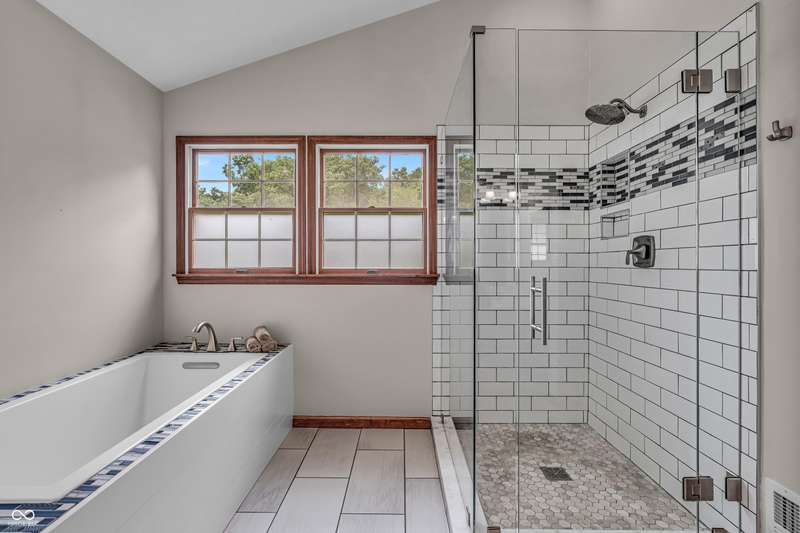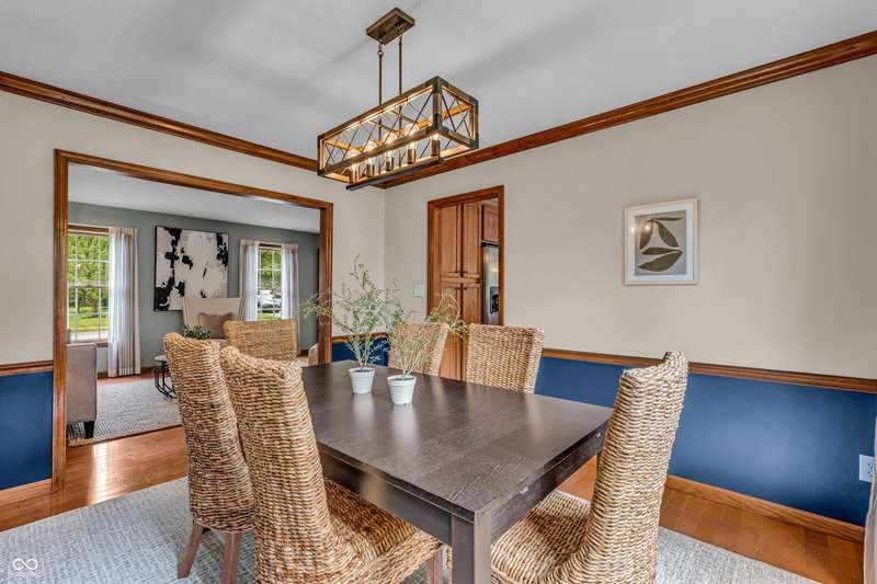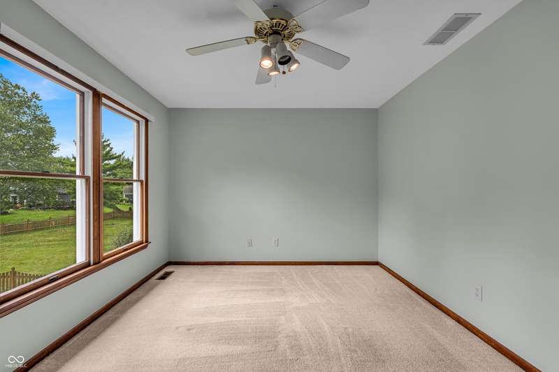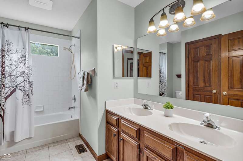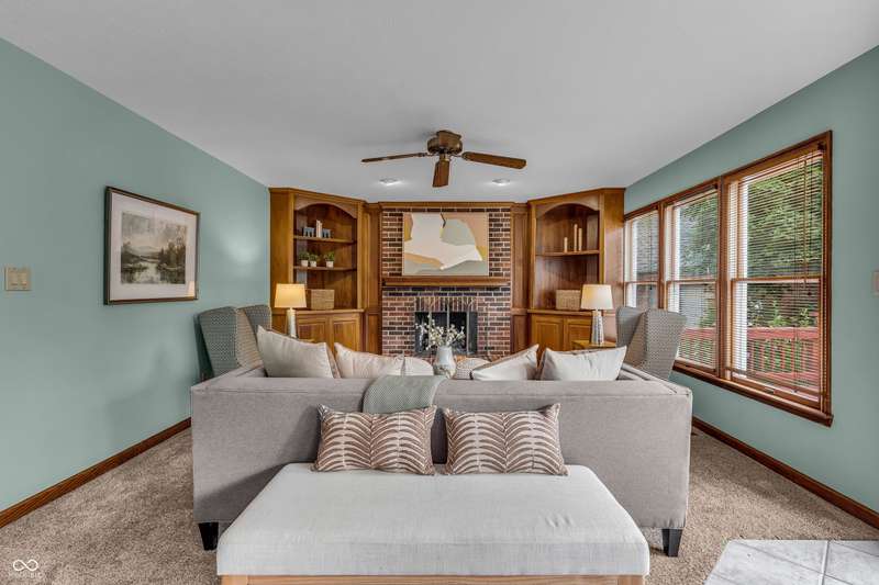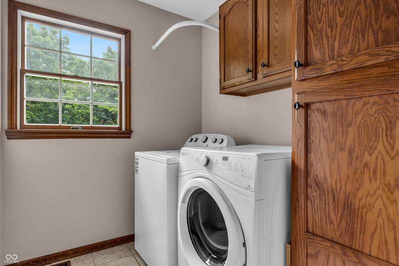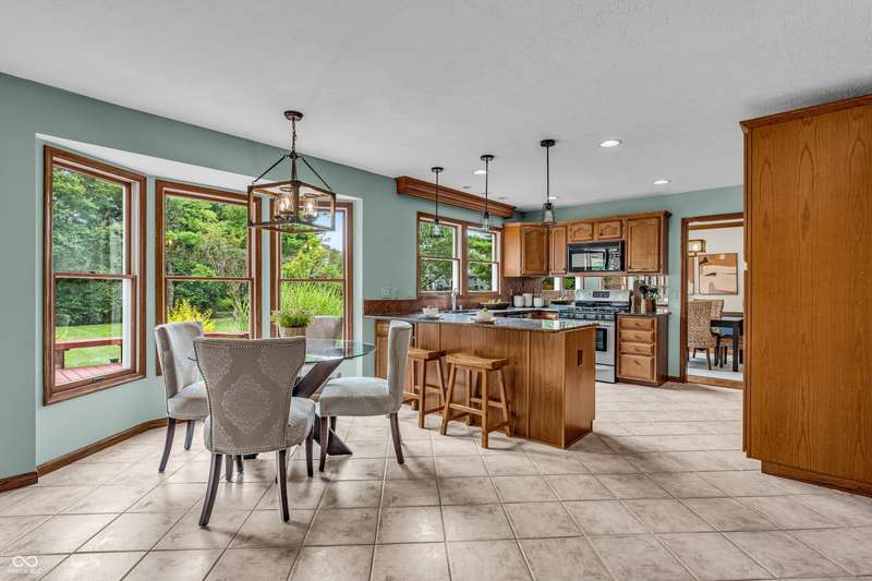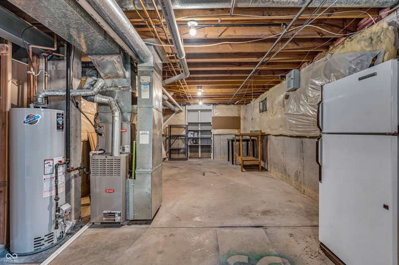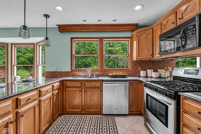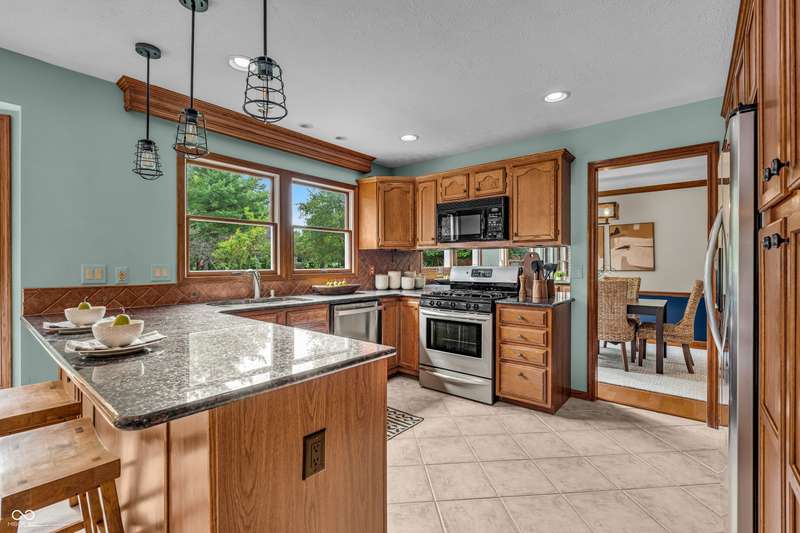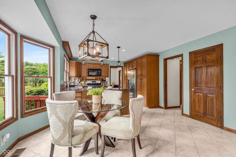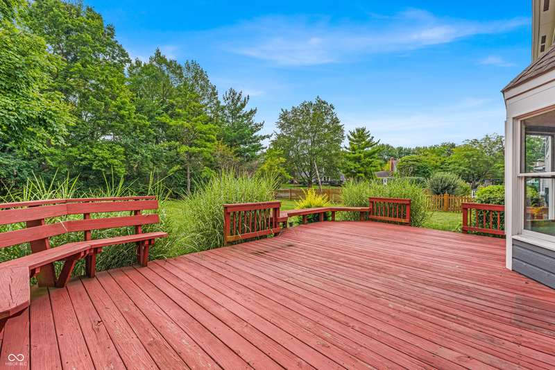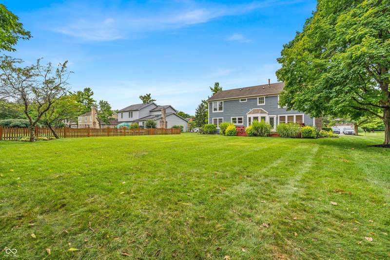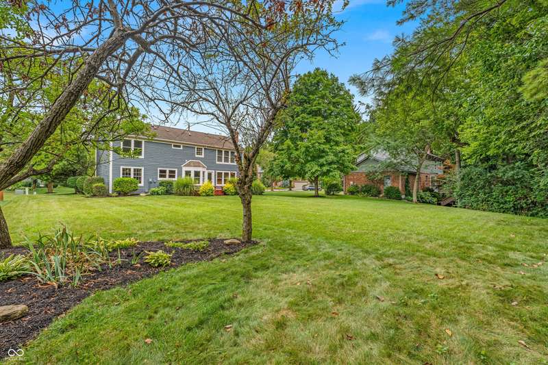 Nestled in Glen Cove, Lawrence Township, this 4bd, 2.5ba residence with finished basement presents an attractive property in a desirable residential area. This home offers a blend of comfort and style, ready to welcome its inhabitants. The heart of this home resides in its thoughtfully designed kitchen, where solid wood cabinets meet stone countertops, creating a space that is both beautiful and functional. A kitchen bar and peninsula offer additional space for meal preparation or casual dining, making this kitchen a true gathering place adjacent to the breakfast area and family room. The family room offers a warm and inviting atmosphere, anchored by a fireplace and complemented by built-in shelves. This space is ideally suited for both relaxation and entertainment as is the more formal living room. Heading outdoors, step from the family room onto the deck and enjoy the expansive .38 acre lot bordered at the rear by woods and a creek. The primary bedroom offers a private retreat with an ensuite bathroom with separate water closet and the luxury of a walk-in closet providing a personal sanctuary within the home. The bathroom features a double vanity, a walk-in shower, and a soaking tub, offering a spa-like experience. This property features another full bathroom upstairs and a half bathroom on the main. Enjoy the convenience of a dedicated upstairs laundry room. You'll love the 27x13 finished rec room in the basement and the massive unfinished area with utilities and tons of space for storage. This 3623 square foot property, quality constructed in 1989 with two stories and a brick facade, don't miss this updated yet warm opportunity to enjoy Indianapolis suburban living.