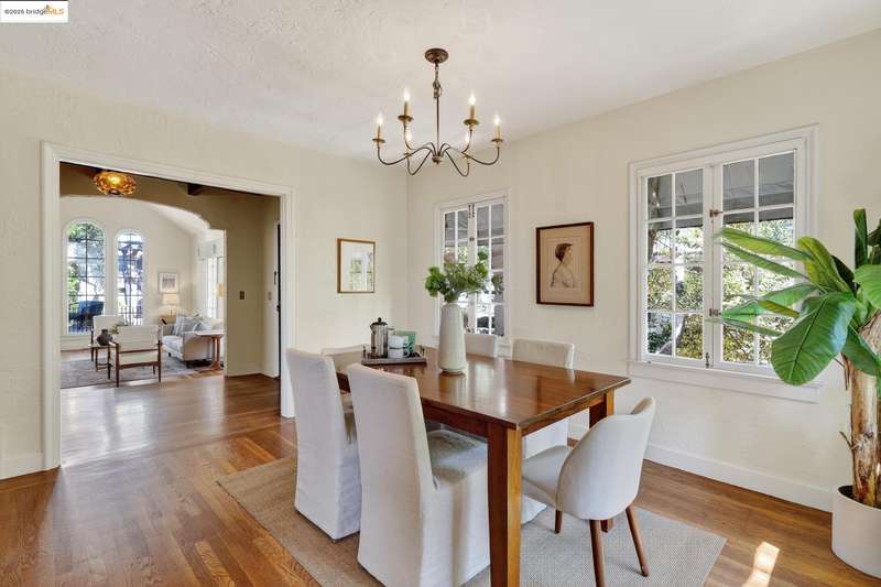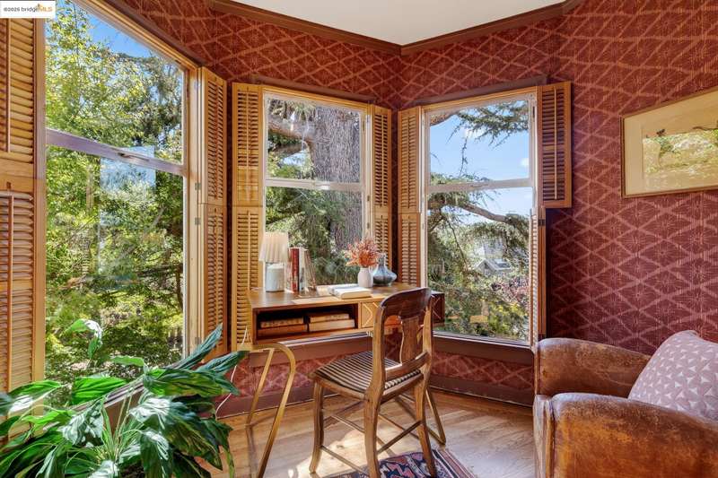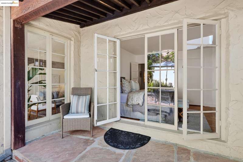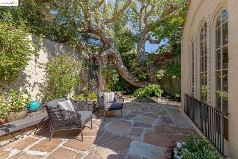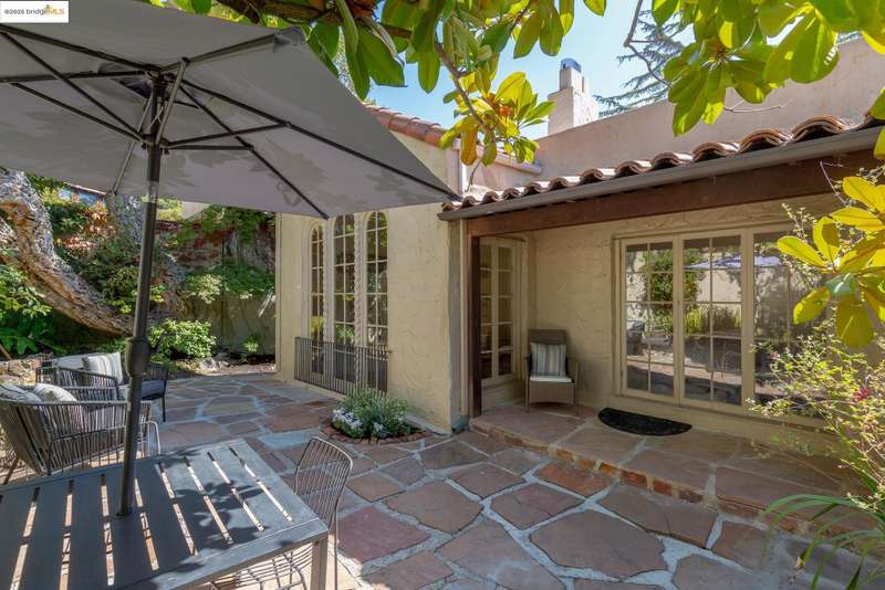 A timeless example of Spanish Revival architecture, this beloved home — cherished by the same family for over 50 years — captures the romance and elegance of California’s Golden Era. Nestled on a quiet street in an incredibly private setting, a graceful cork oak welcomes you into the enchanting courtyard. The main level features two bedrooms, including a spacious primary suite with classic French doors, along with an elegant living room and fireplace, a sunny kitchen, a formal dining room, additional bath and a delightful office nook. Upstairs, a third-level bedroom with adjoining sunroom showcases sparkling Bay and city views, offering the perfect setting for a serene retreat or an additional primary sanctuary. The basement level includes bonus spaces providing flexibility for guests, expansion, or multigenerational living. Completing the picture are a flat, sunny yard ideal for play or gardening, a dedicated workshop, and abundant storage — all combining to create a home of enduring charm and possibility.