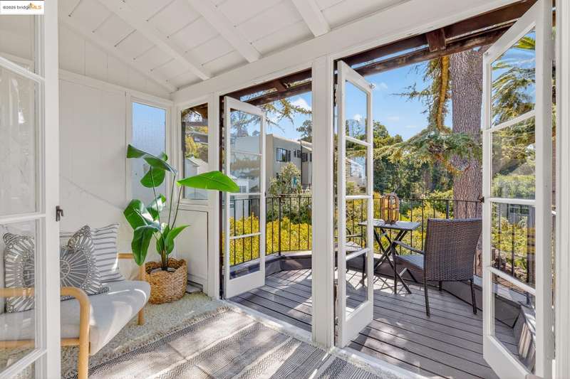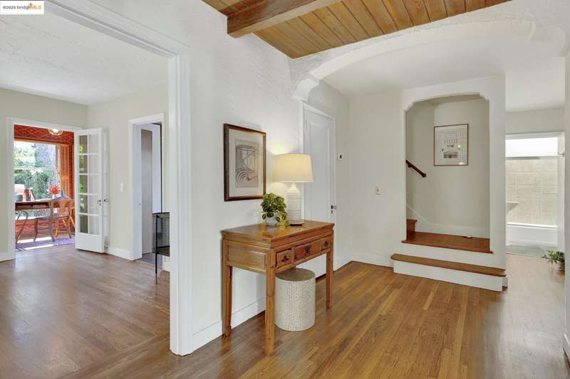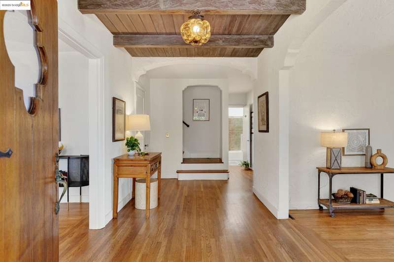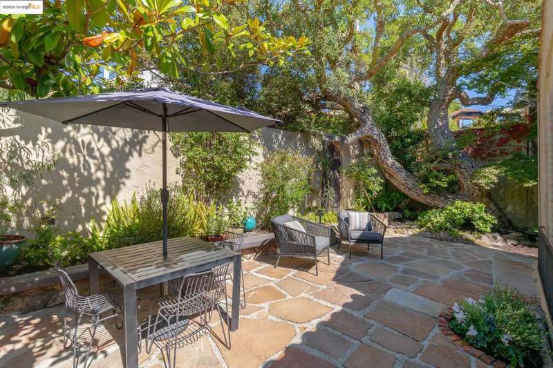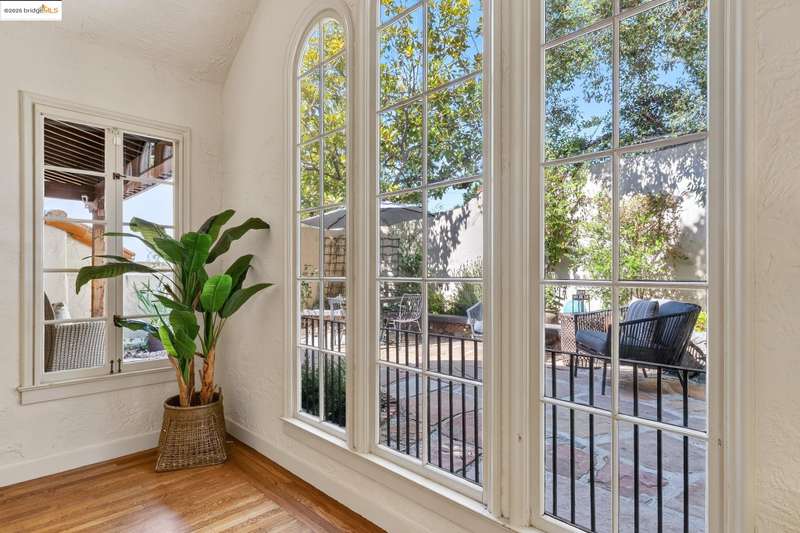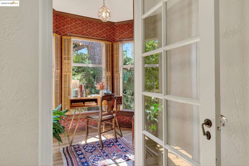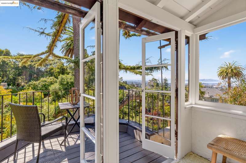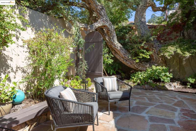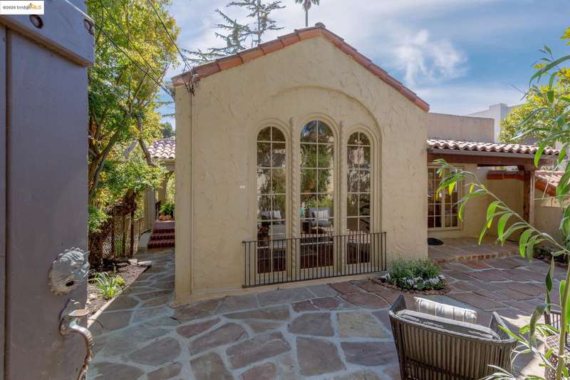 A timeless example of Spanish Revival architecture, this beloved home — cherished by the same family for over 50 years — captures the romance and elegance of California’s Golden Era. Nestled on a quiet cul-de-sac in an incredibly private setting, a graceful cork oak welcomes you into the enchanting courtyard. The main level features two bedrooms, including a spacious primary suite with classic French doors, along with an elegant living room and fireplace, a sunny kitchen, a formal dining room, additional bath and a delightful office nook. Upstairs, a third-level bedroom with adjoining sunroom showcases sparkling Bay and city views, offering the perfect setting for a serene retreat or an additional primary sanctuary. The lower level includes bonus living space with separate entrance, providing flexibility for guests, expansion, or multigenerational living. Completing the picture are a flat, sunny yard ideal for play or gardening, a dedicated workshop, and abundant storage — all combining to create a home of enduring charm and possibility.