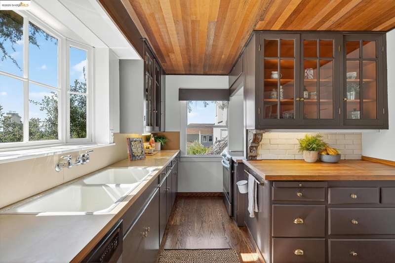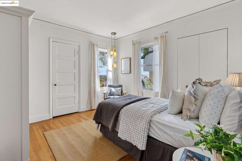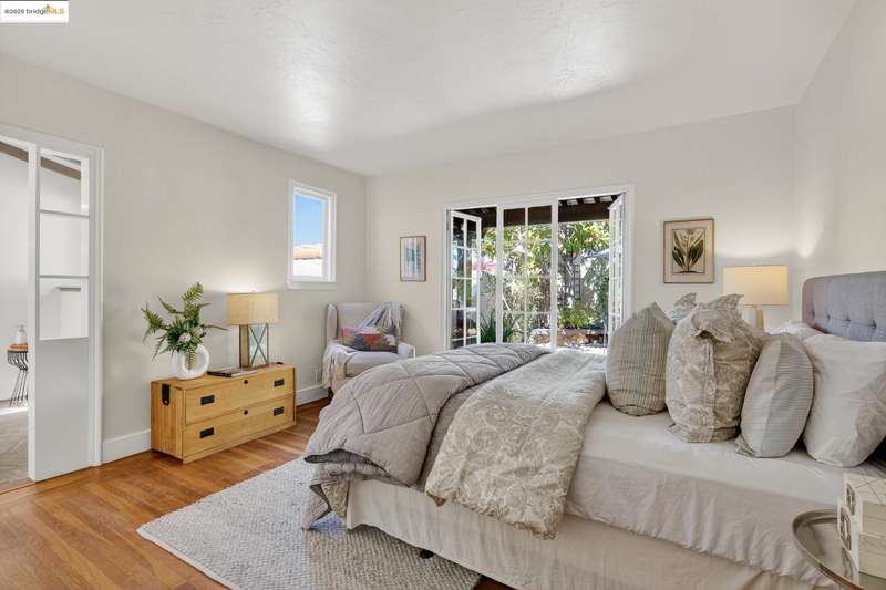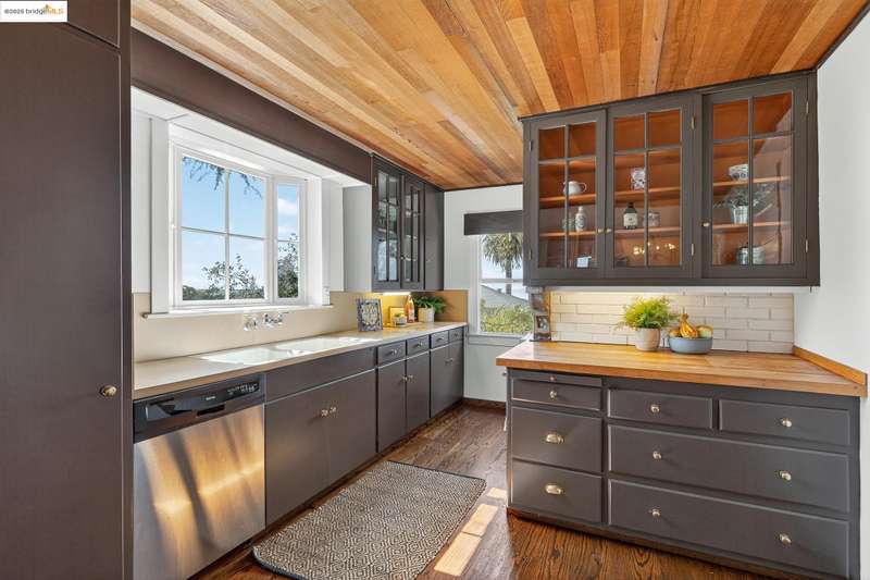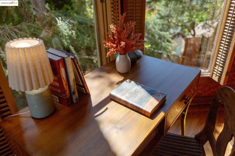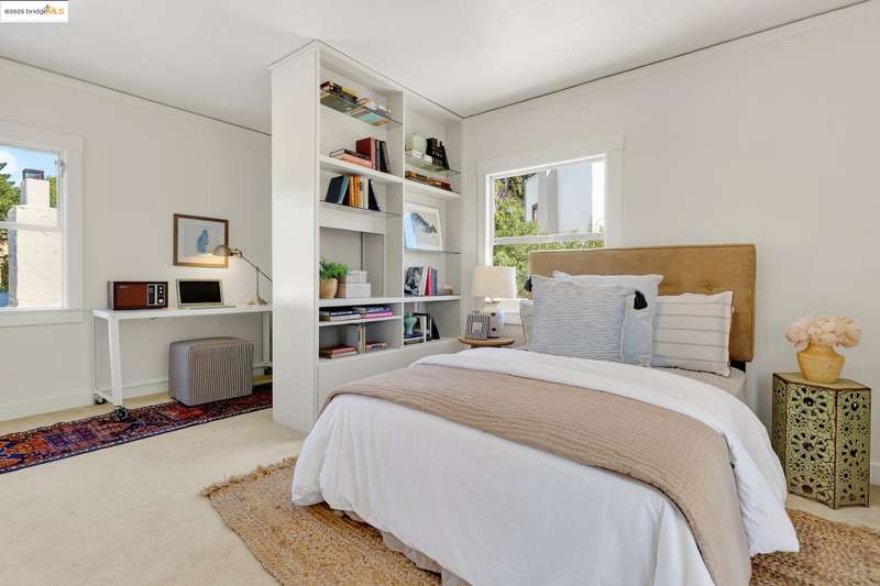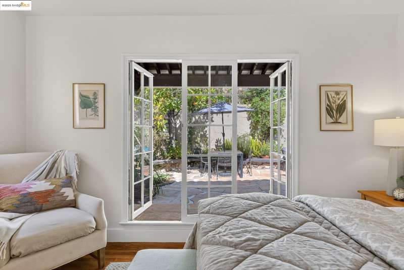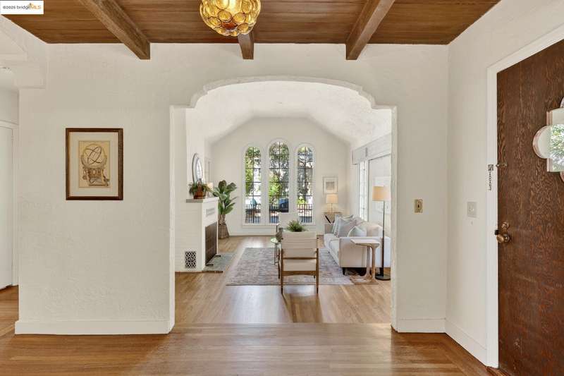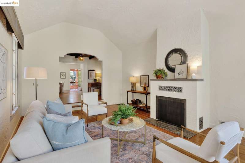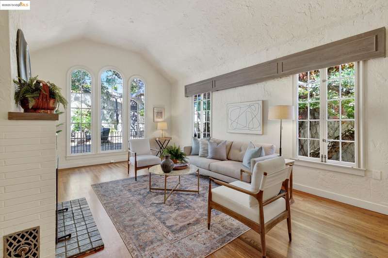 A timeless example of Spanish Revival architecture, this beloved home — cherished by the same family for over 50 years — captures the romance and elegance of California’s Golden Era. Nestled on a quiet cul-de-sac in an incredibly private setting, a graceful cork oak welcomes you into the enchanting courtyard. The main level features two bedrooms, including a spacious primary suite with classic French doors, along with an elegant living room and fireplace, a sunny kitchen, a formal dining room, additional bath and a delightful office nook. Upstairs, a third-level bedroom with adjoining sunroom showcases sparkling Bay and city views, offering the perfect setting for a serene retreat or an additional primary sanctuary. The lower level includes bonus living space with separate entrance, providing flexibility for guests, expansion, or multigenerational living. Completing the picture are a flat, sunny yard ideal for play or gardening, a dedicated workshop, and abundant storage — all combining to create a home of enduring charm and possibility.