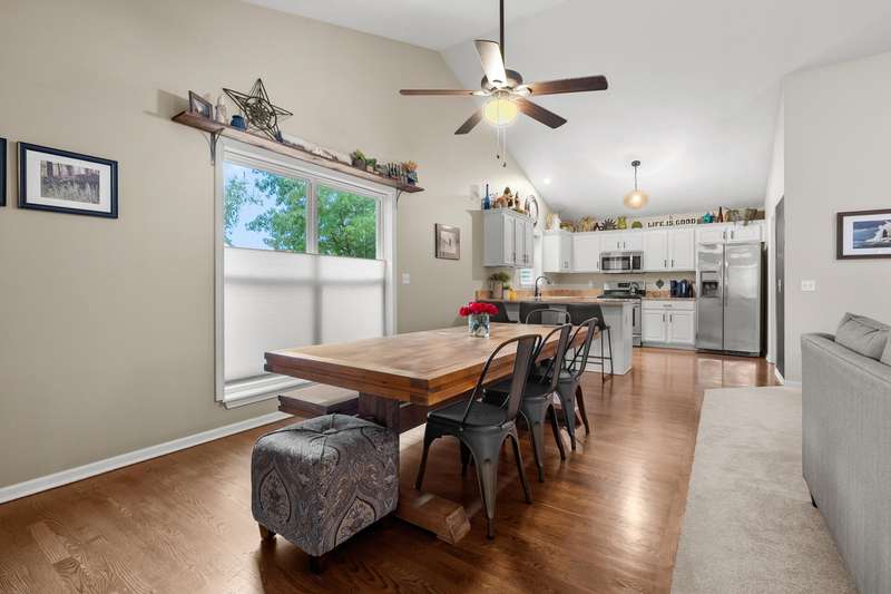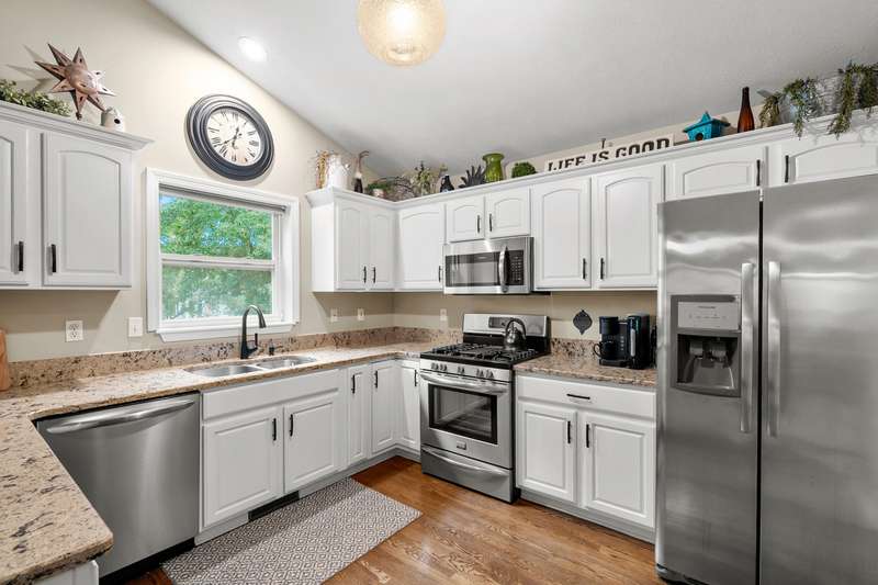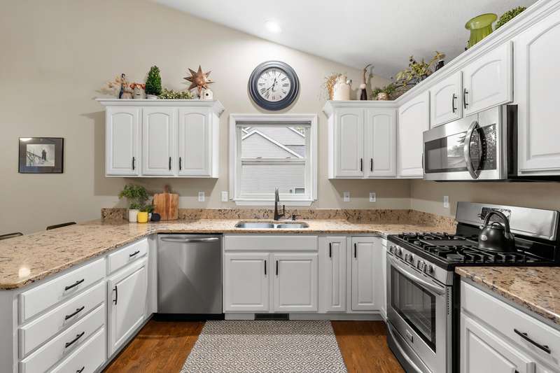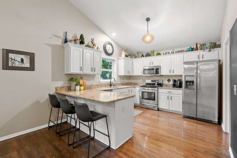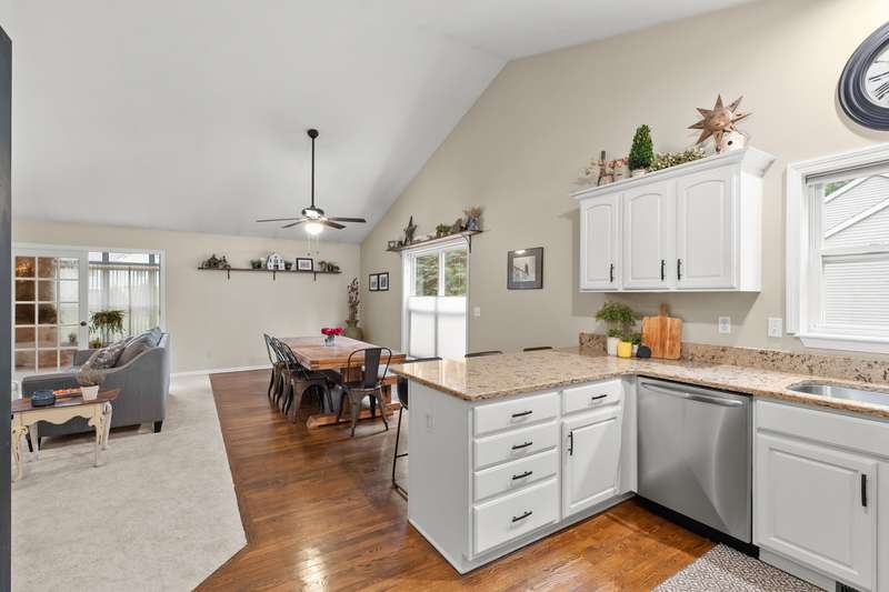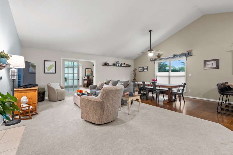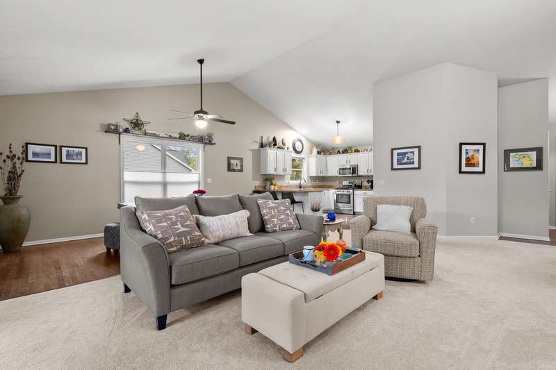 Charming Portage AVB Ranch on a Cul-de-Sac Nestled in one of Portage's most desirable neighborhoods, this beautifully maintained and tastefully updated ranch offers striking curb appeal and a welcoming open-concept design. The vaulted great room with a cozy fireplace flows effortlessly into a stunning vaulted sunroom-perfect for relaxing, entertaining, or enjoying views of the private backyard-with easy access to the patio.The kitchen features hardwood flooring, quartz countertops, an eating bar, and included appliances, and opens to a bright, inviting dining area. Convenient main-floor laundry adds to the home's everyday functionality. The spacious primary suite includes a walk-in closet and private bath with a walk-in shower, while two additional bedrooms share a well-appointed family bath. The finished lower level expands your living space with a large recreation room and full bath-plus abundant storageOffering a perfect blend of comfort, style, and location,this move-in-ready home