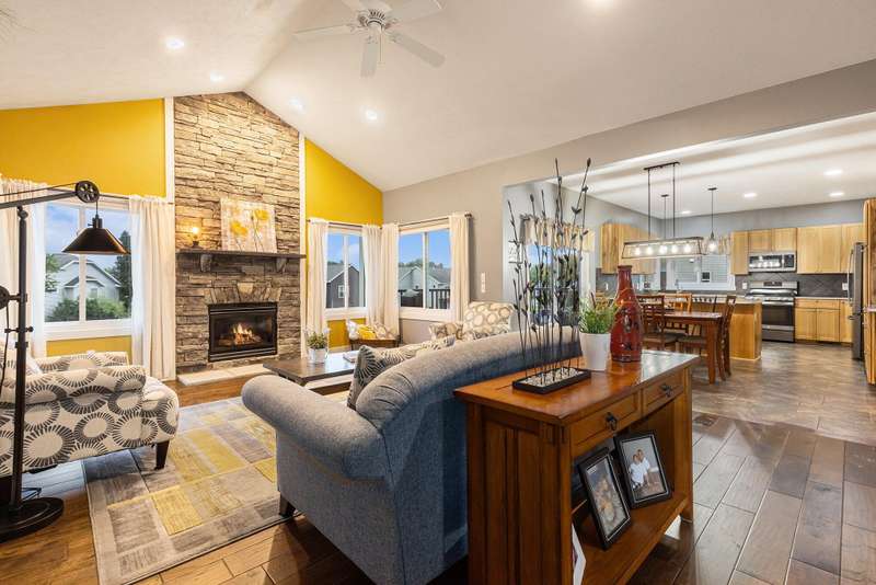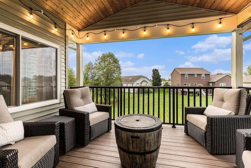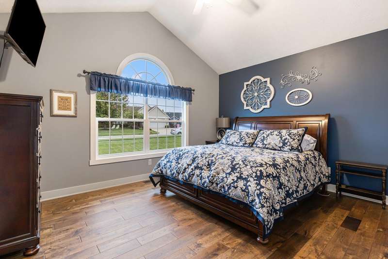This one is a show stopper! Immaculate condition with upgrades everywhere! Gorgeous hardwood floors, hickory cabinets, granite and quartz countertops, and manicured landscaping to name a few. The Primary bedroom has vaulted ceilings, an ensuite bathroom featuring a jetted tub and tiled shower, and a large walk in closet with custom shelving. The kitchen is highlighted with 3 year old matching slate appliances and an abundance of storage. The main living area has vaulted ceilings and features a gas fireplace with a floor to ceiling stone surround. Unwind in the walk out basement that features a wet bar and mini fridge and plenty of space to entertain. As if that isn't enough, don't forget to relax on your covered composite deck overlooking your spacious backyard. This home is completely turn key! The roof, furnace, a/c, water heater and appliances are all new in the last 3-4 years. Don't miss the beauty! Schedule your showing today!