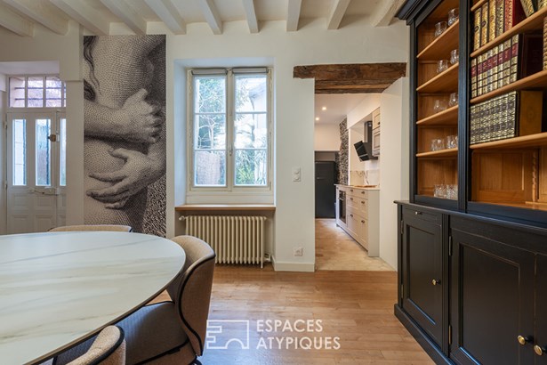 It extends towards a fitted and equipped kitchen, full of character. On the first floor, a beautiful bedroom, a dressing area and a bathroom make up a comfortable and well-designed sleeping area. The top level accommodates two other bright bedrooms. A cozy exterior allows you to enjoy calm and sunny moments in the heart of the city. A private garage completes this rare property in the hypercenter. A place to live full of charm, a few steps from all amenities, in a neighborhood sought after for its quality of life and its peaceful atmosphere.