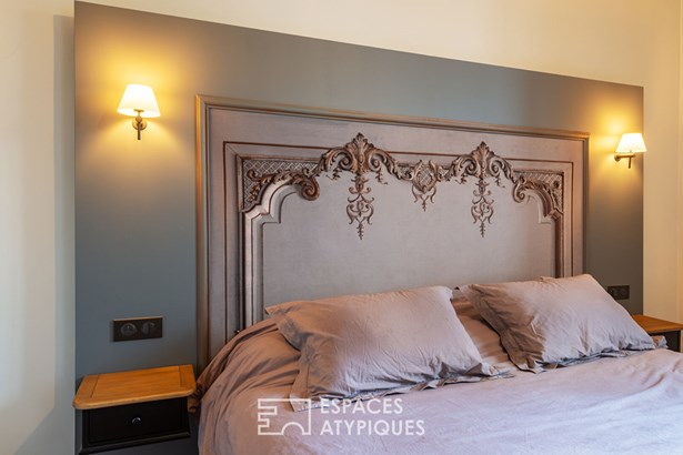 It elegantly combines the character of the old with a cozy atmosphere. From the entrance, the warm living room seduces with its original parquet flooring, its exposed stone walls and its intimate volumes.
