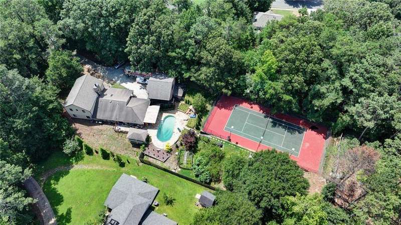 Welcome Home to your Roswell estate! This professionally landscaped (acre) property boasts a main house with 5 bedrooms, 4 and a half baths, including the primary on the main. Spacious chef's kitchen with professional appliances, opening to generous areas for living and entertaining, expansive windows allowing for copious amounts of natural light, and endless possibilities. Walkout to the sparkling pool and pool house, and on to the tennis court, and guesthouse. This private oasis is close to Canton Street and all that downtown Roswell has to offer, including dining, culture, entertainment, as well as Roswell's coveted schools. Priced to sell with room for improving, this is a do not miss!