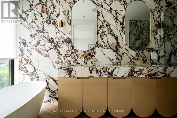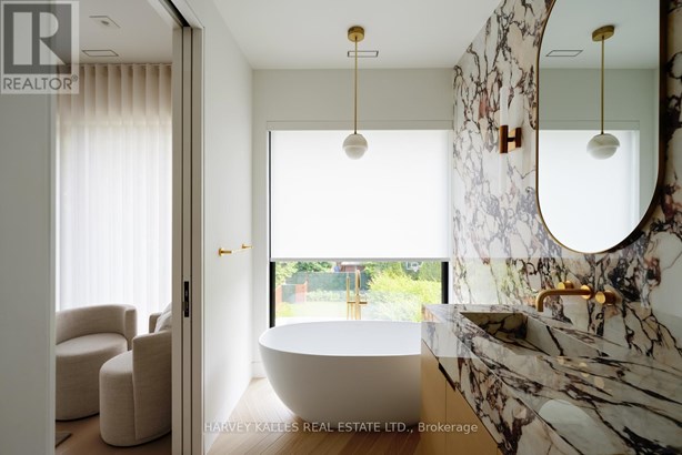 Nestled in the heart of Sherwood Park, The Vagli House is a newly completed, custom-designed residence that exemplifies architectural artistry and refined craftsmanship. Conceived and built as a personal home rather than a developer project, every element has been thoughtfully curated with purpose and precision. Rift-cut European white oak millwork flows seamlessly across all levels, complemented by over 30 hand-selected slabs of Italian marble. At the heart of the home, the kitchen stands as a sculptural statement fully wrapped in striking Calacatta marble, offering scale, presence, and refined minimalism. A marble-and-metal staircase, along with stone-crafted lighting, creates a rhythmic architectural narrative. In the primary dressing rooms, British artisans Joanna Bibby and Harriet Maxwell Macdonald contribute natural horn handles, while custom hardware by Marco Redaelli adds tactile detail throughout the home. Luxury and comfort are prioritized with radiant floor heating that extends through the driveway, porch, garage, foyer, basement, and ensuite. Panoramic triple-glazed European aluminum windows flood the interiors with natural light while delivering exceptional thermal performance and acoustic insulation. Step outside to a private urban oasis, designed for year-round enjoyment. A heated concrete pool finished with designer tiles from Trend Group USA is compatible with both saltwater and chlorine, anchors the backyard. Dual composite decks, custom-built outdoor kitchen, integrated lighting and irrigation, and a firepit rough-in ensure effortless outdoor living. Additional features include full home audio, central vacuum, comprehensive security with camera surveillance, and sound insulation throughout. Framed by the exclusive Rosedale Golf Club and moments from boutique shops and fine dining, this residence combines international design sensibility with timeless comfort.
