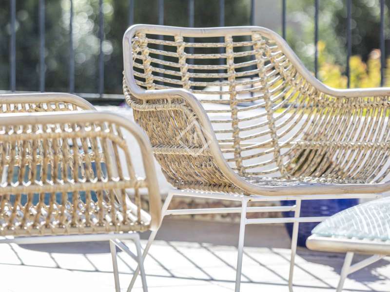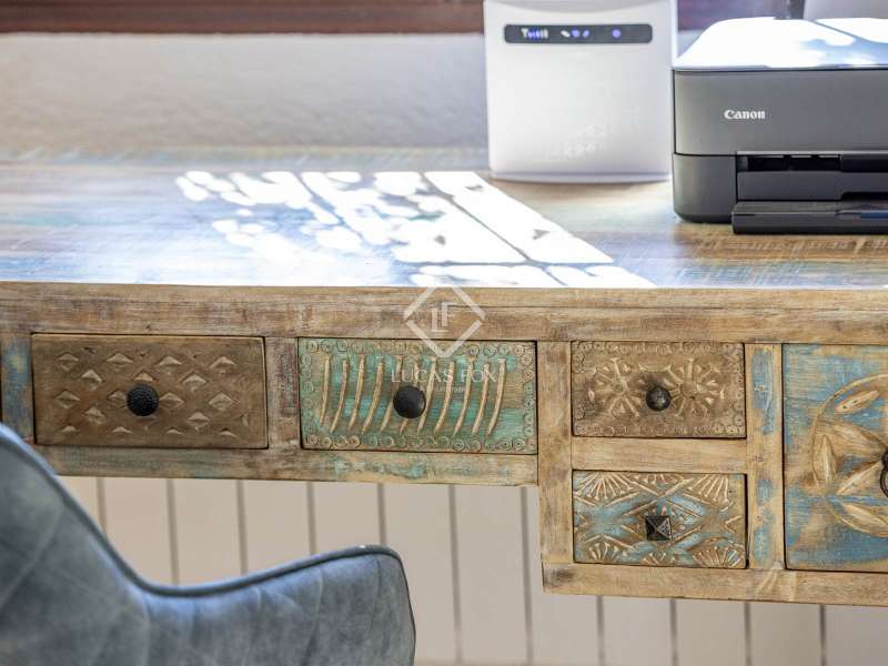 The villa is thoughtfully arranged around two completely independent living areas, each with its own entrance, kitchen, lounge. Main Property: The principal living area features a bright and spacious lounge with a feature fireplace and traditional Tosca stone arches, leading onto naya. A fully equipped kitchen, three double bedrooms, and two bathrooms complete this level, offering ample space for everyday living. Lower Level (Independent Apartment) The lower floor offers an entirely self-contained apartment with its own living and dining area, fitted kitchen, three bedrooms, and two bathrooms. With direct access to the pool terrace, it’s ideal for guests or for generating rental income. Exterior The beautifully landscaped Mediterranean gardens surround a large private swimming pool and sunbathing terrace. Multiple seating and dining areas—both shaded and open—provide the perfect setting for outdoor living throughout the year. The property also benefits from a driveway with ample parking.