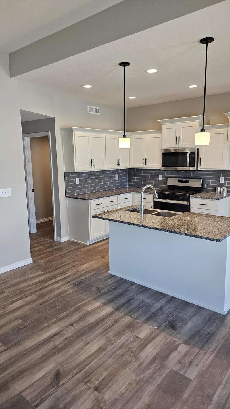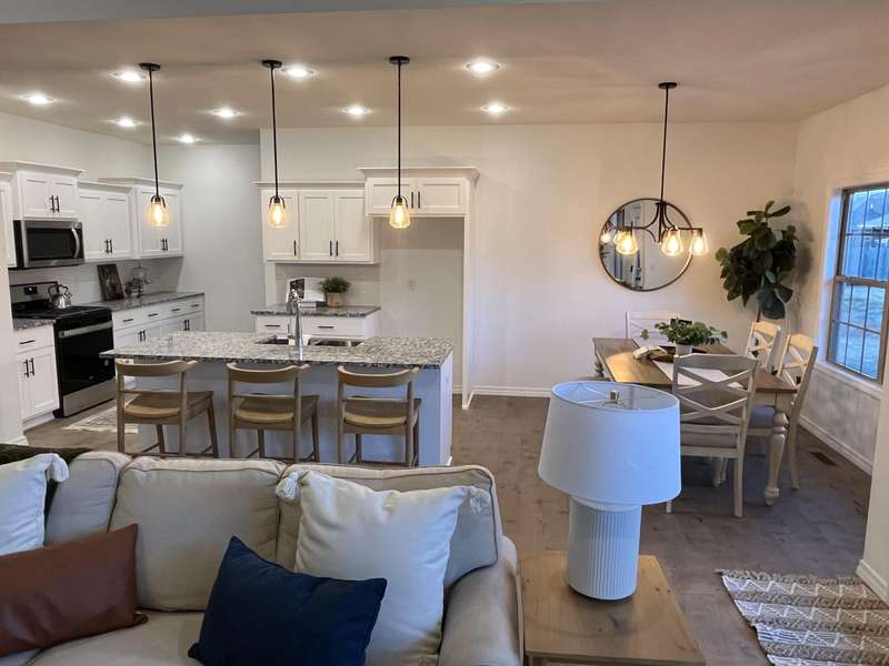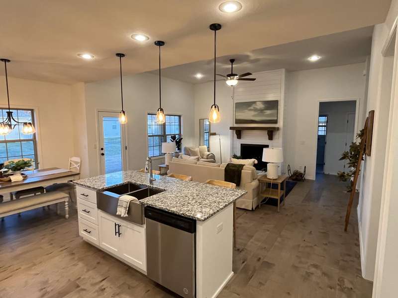 Beautiful, Brand New Construction, Republic Schools. 4 bedroom, 3 car garage approx 1861 SF living area with open living room/kitchen. LVT flooring throughout the entire house!! Full irrigation, sod front, straw mat back. Gas range, pantry in the kitchen, shiplap fireplace, with mantle. Beautifully painted cabinets. All faucets are chrome with no option to change. Buyer do due diligence on schools.
