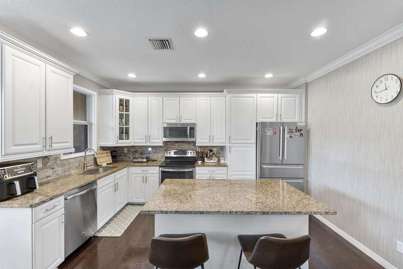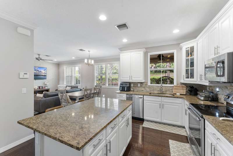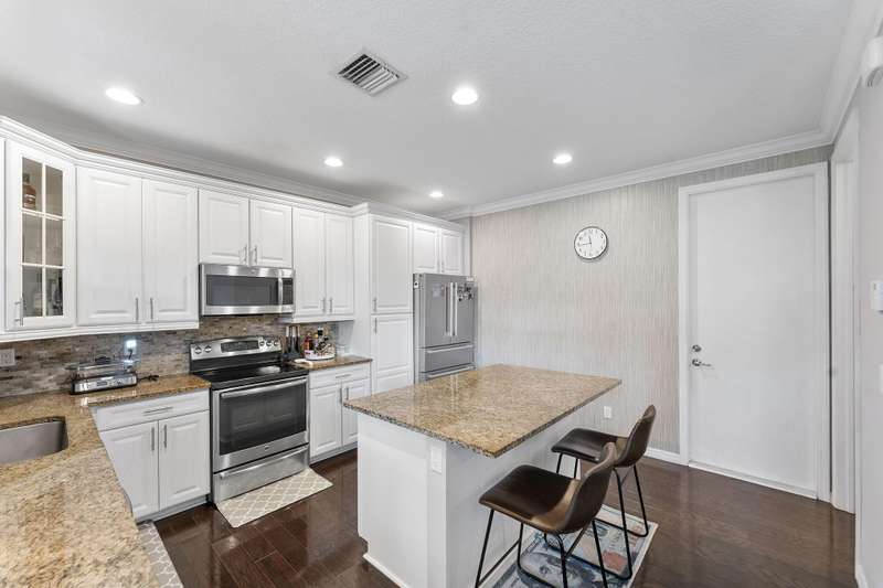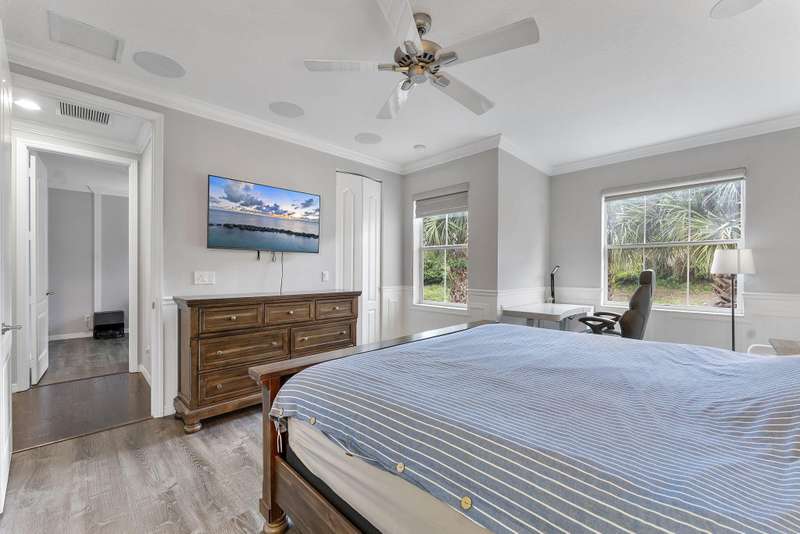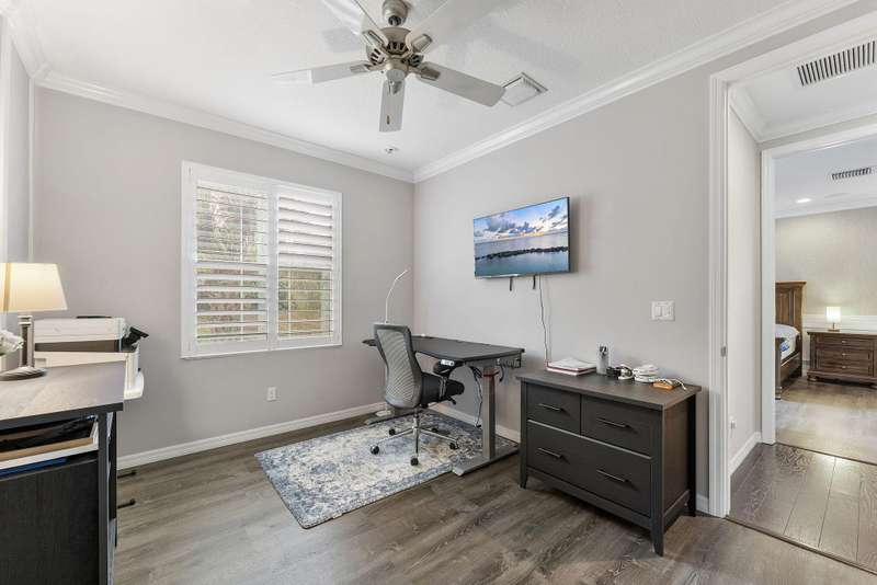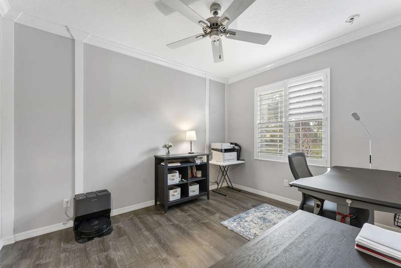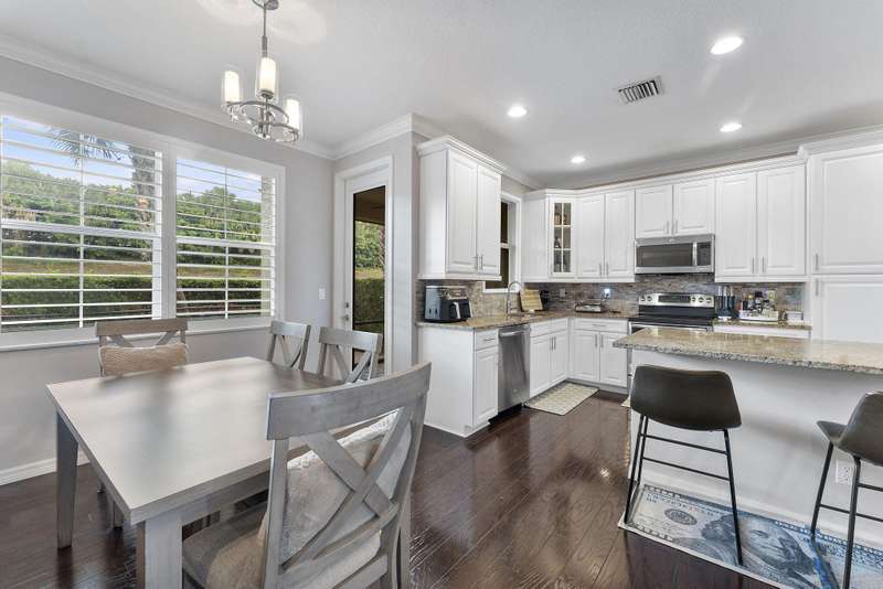 Welcome to this beautiful, furnished, and well-maintained townhome in the heart of Palm Beach Gardens! This elegant residence features custom hardwood floors throughout, enhancing its warm and inviting atmosphere. The spacious chef's kitchen is a highlight, complete with an island, stainless steel appliances, and soft-close wood cabinetry, perfect for culinary enthusiasts. As you enter, you'll admire the exquisite custom wainscoting and crown molding across the entryway and all bedrooms, adding a touch of sophistication to every corner.Feel safe and secure with complete impact windows, and indulge in the luxurious master bath, which is equipped with edge-less glass shower doors.