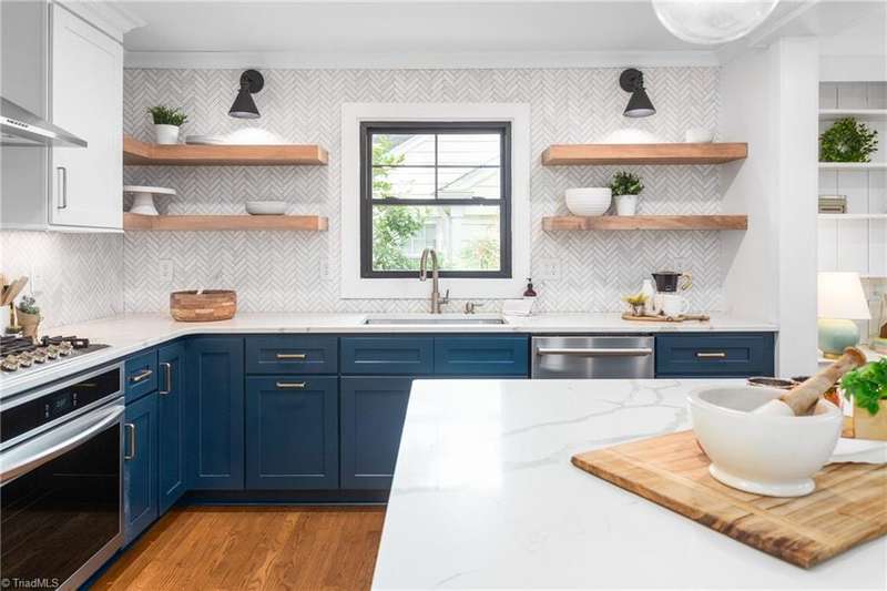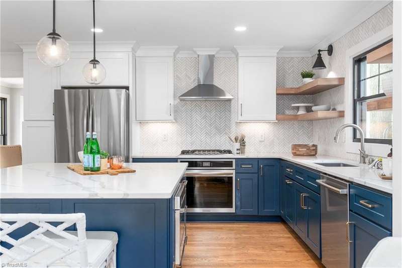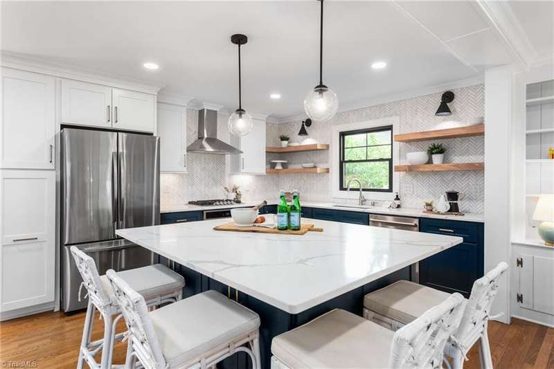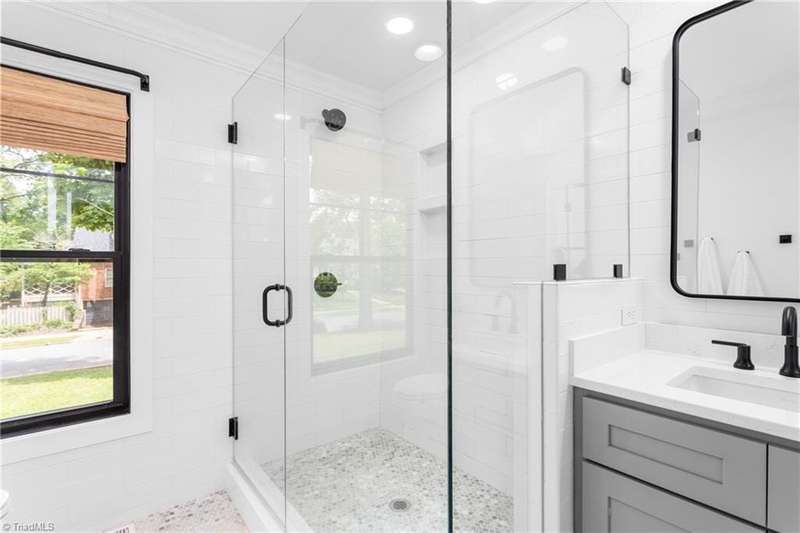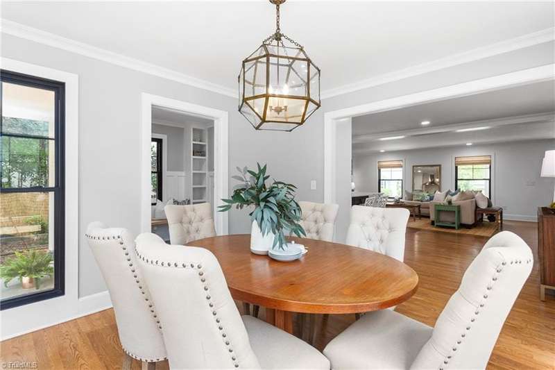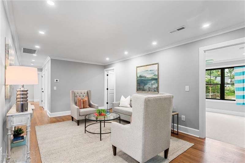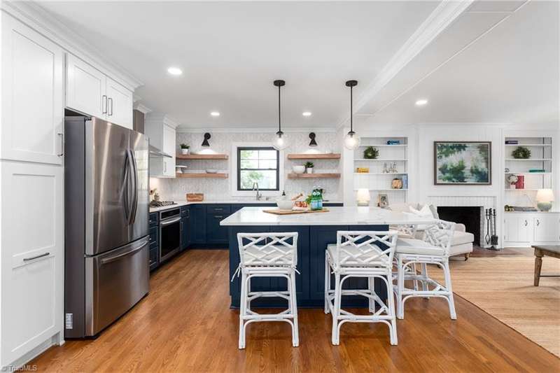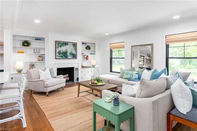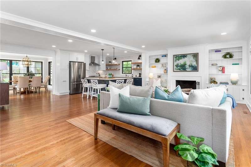 You must see this gorgeous find in Sunset Hills! This home has been completely renovated from top to bottom by Wolfe Construction in 2022! Open floor plan with wood burning fireplace and original built-ins. Kitchen has large island with quartz countertops, carrara backsplash, gas stove and lots of storage. Light filled dining room and spacious mud room!Original hardwoods on the main and upstairs living spaces/hallways. Primary on the main with large ensuite bath, huge walk-in closet, custom closet storage and washer/dryer hook up.Four bedrooms upstairs with a bonus. All rooms have generous closets and storage. Two full baths up and a second laundry room. House has new wiring, new plumbing and a tankless water heater.Enjoy your outdoor fireplace, patio and fenced in backyard. Its the perfect house for entertaining, both inside and out. Centrally located to Four Corners, Friendly Center and Downtown. Come see it for yourself!