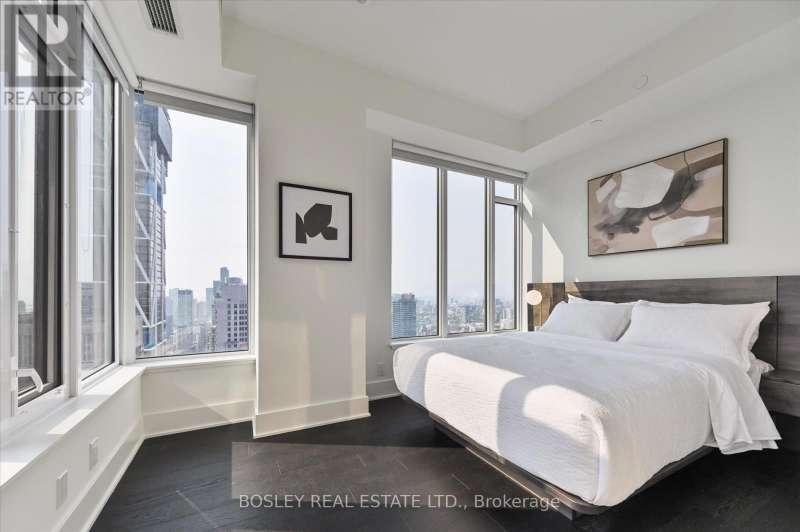 Elevated Furnished Living in the Heart of Yorkville- All-New, Award-Winning 11 Yorkville! Professionally furnished & never-lived-in corner suite with over $40K in upgrades. This contemporary 2-bedroom + den, 2-bathroom suite offers sophisticated design, premium finishes, and sweeping views of the city skyline, CN Tower, Yorkville, treetops, and the waterfront. Natural light from the surrounding floor-to-ceiling windows accentuates the 10-foot ceilings and open layout. The chef-inspired kitchen includes integrated Miele appliances, quartz countertops, soft-close cabinetry, and a built-in wine fridge-ideal for everyday convenience or entertaining. The primary bedroom features his & hers built-in closets and a spa-style ensuite with heated floors, matte black marble plumbing fixtures, and a striking feature wall clad in natural black stone. The second bedroom offers a generous closet and direct access to a second full bathroom with comparable luxurious finishes and heated floors. Both bedrooms offer serene, scenic views. Thoughtfully designed custom furnishings including a bespoke sofa, two queen beds with built-in nightstands, leather kitchen stools, and hotel-grade bedding have been selected to maximize style, comfort and function. A fully turnkey rental experience-impeccably styled and move-in ready. Additional comforts include a 68 square foot private balcony and access to the exclusive upper-floor elevator. Indulge in hotel-inspired amenities: a dramatic double-height lobby, 24-hour concierge and security, indoor-outdoor infinity pool, hot tub, state-of-the-art fitness centre, spa with Hammam steam rooms, piano lounge, Bordeaux wine room, guest suites, and a landscaped terrace with BBQs. All this, in a premier location with a Walk Score of 100-just steps to U of T, renowned dining and shopping, galleries, museums, major hospitals, and convenient TTC access.