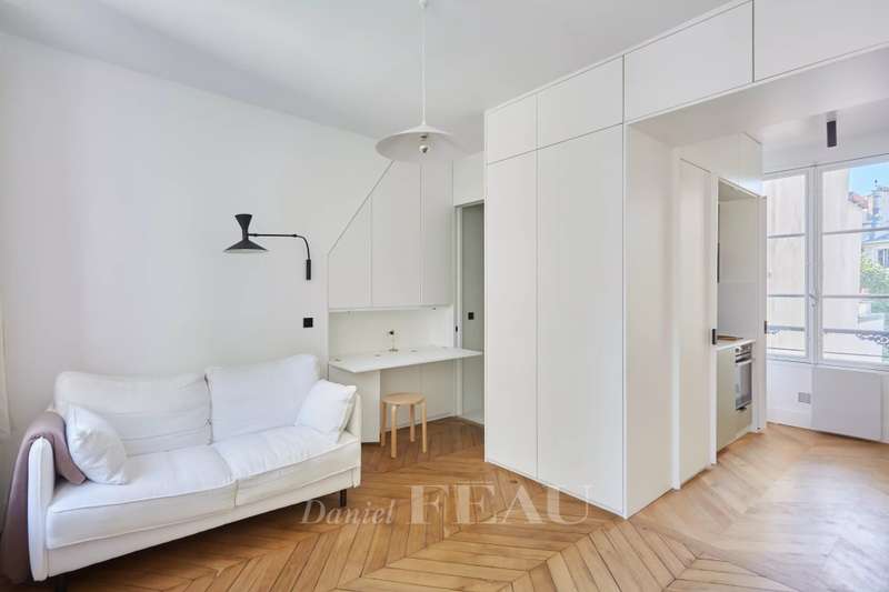 Rue Visconti, in a small 17th century building without elevator, on the 3rd floor, very nice studio with a lot of storage space, sold furnished, composed of an entrance with an equipped kitchen, a main room with a nice shower room with toilet. Original parquet floor, fireplace, garden view, perfect condition.