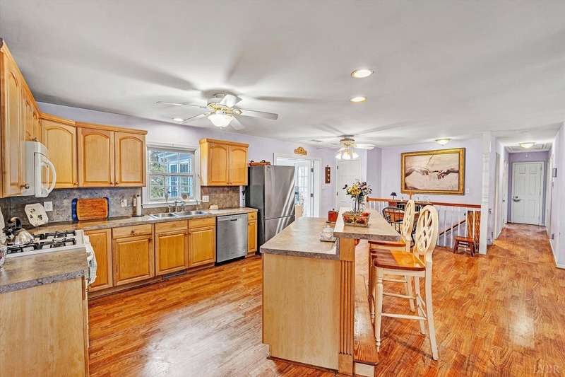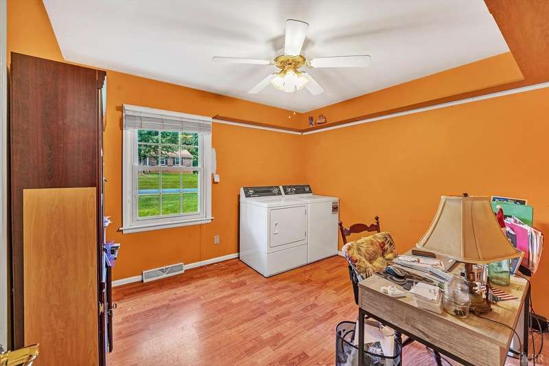Solid brick ranch with full walkout basement offering nearly 3,000 sq. ft. of living space on a half-acre lot. The main level features three bedrooms, 2 full baths, an open living, kitchen, and vaulted sunroom, plus a formal dining room with fireplace. The basement includes a large family room with fireplace, a bedroom, kitchenette with eat-in area, full bathroom, and a one-car garage, ideal for in-law or apartment use. Features include updated thermal windows, built-in wired generator, laminate and tile flooring, and a fenced yard with separate deck.Heat Pump and A/C new in 2023. Well-maintained by the same owner for over 50 years, this solid home has great bones! Priced to sell and ready for its next owner!
