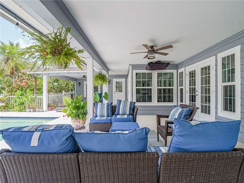 Winter Beach Secret nestled on a cul-de-sac, charming Cape Cod style home offers Florida living at its finest. Bring your 30' Boat-driveway park is allowed, Indian River boat ramp down the road. Paddleboard, canoe or fish from backyard or catch rocket launches from the front porch & airshows from the pool deck. Enjoy personal fruit trees-Mango/Avocado/Coconut/Banana/Cherry, Daily wildlife visits inc Otters/Ospreys/Turtles & more. Impact windows/doors. Gourmet kitchen: granite island, SS appliances. Light-filled living areas w/lake views. French doors to pool patio from primary & guest Bedrooms
