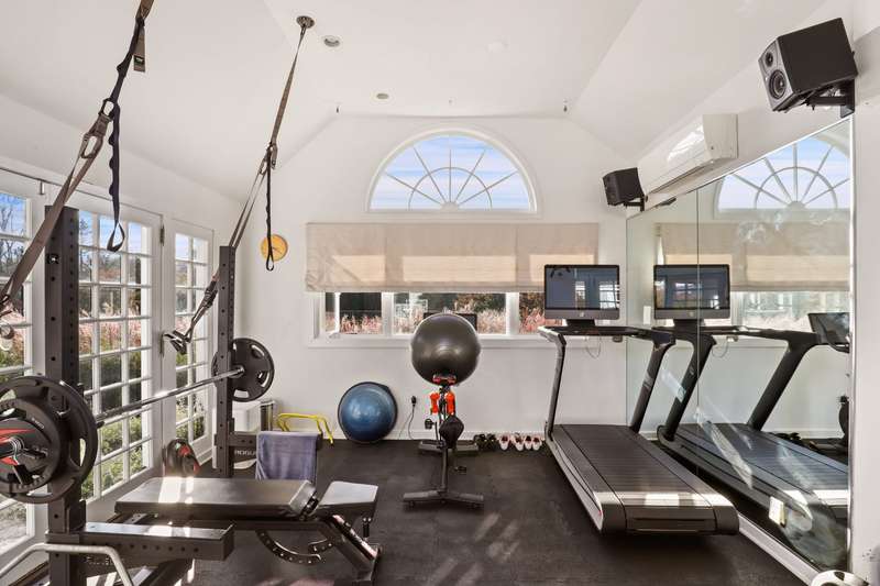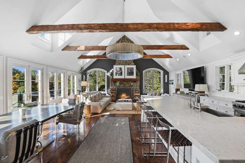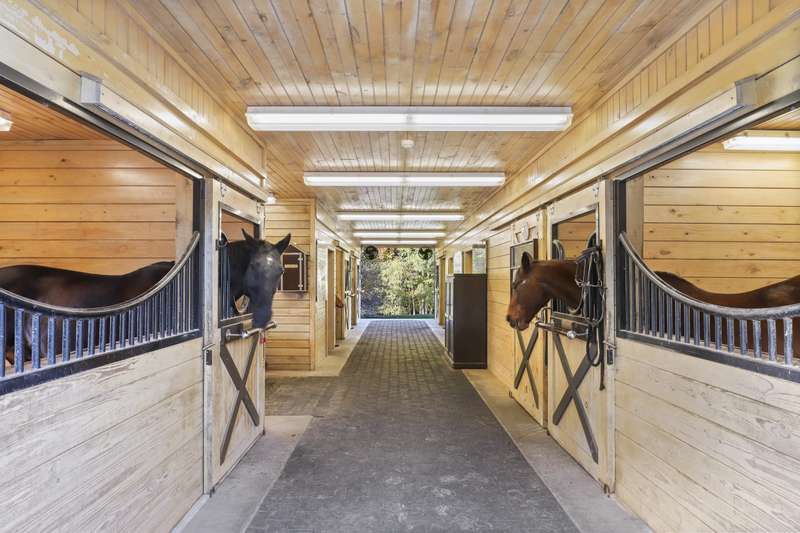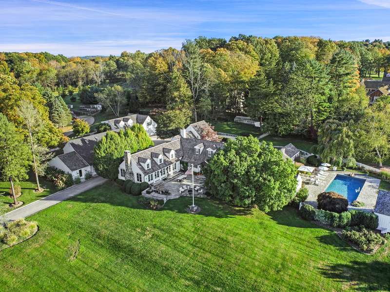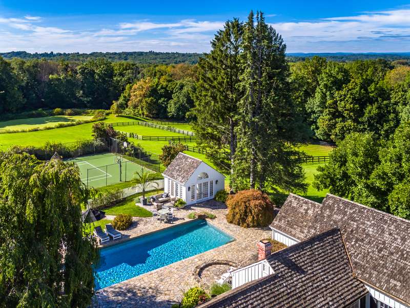 Skyland Farm. Set on one of the most prestigious country lanes, this Bedford estate sits on over 25 acres of spectacular property with rolling land, scenic views and gorgeous landscape. The up-to-the minute, beautifully executed 5 bedroom main residence has a spectacular great room as its focal point with a fieldstone fireplace, barn beam ceilings and an open style designer kitchen extending to both dining and lounging areas. Two bedroom guest cottage, pool, pool house, tennis court, gym house, art studio, sports barn, 5 stall barn with wash stall and tack room, riding ring, paddocks, greenhouse and garaging for 4 cars make this one of the most compelling offerings in the area. The beautiful primary suite includes a walk in dressing closet, wet bath with rain shower, soaking tub, dual sinks and adjacent paneled library/study with fireplace, office and French doors to the pool. Sophistication and style is evidenced throughout the estate. The property is on the BRLA for amazing walking and riding and is less than 1 hour to NYC.