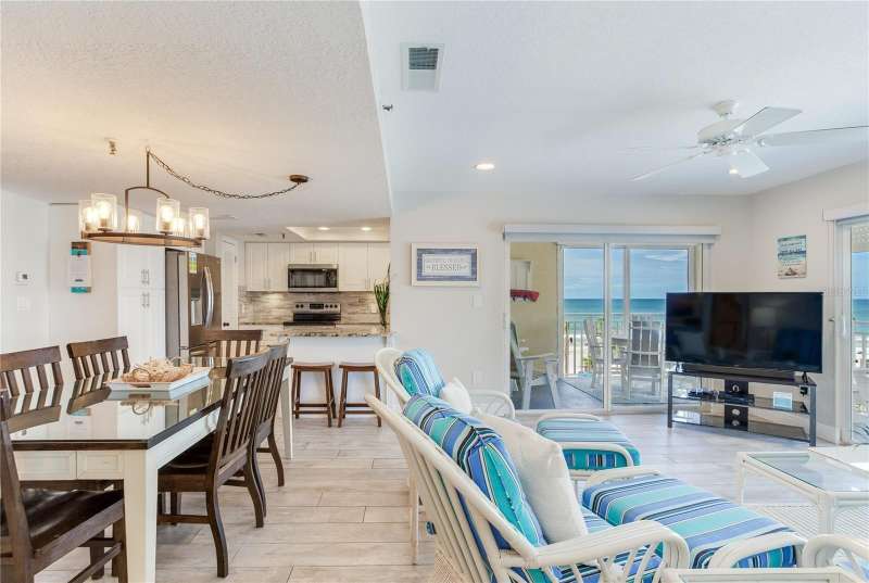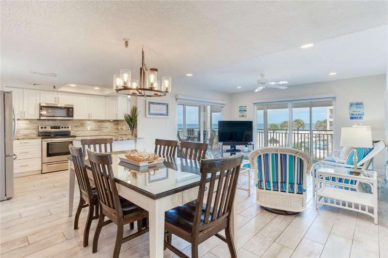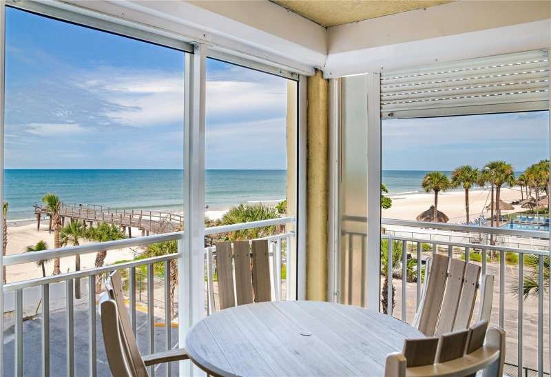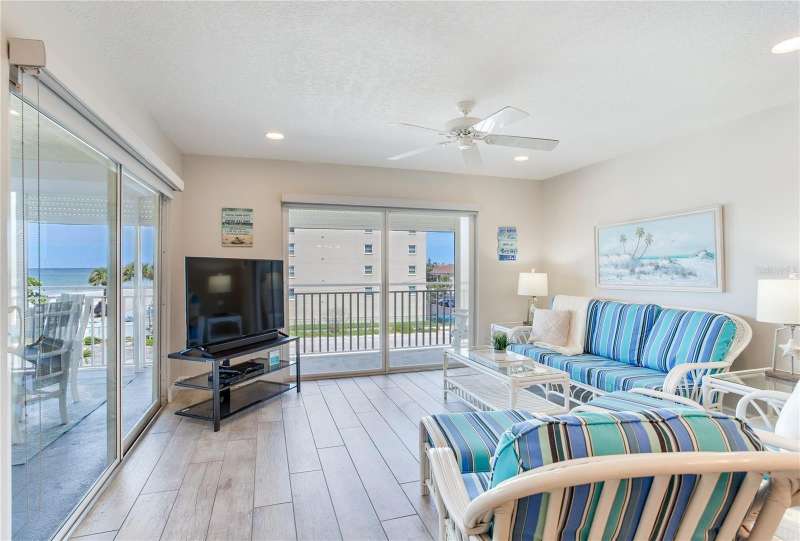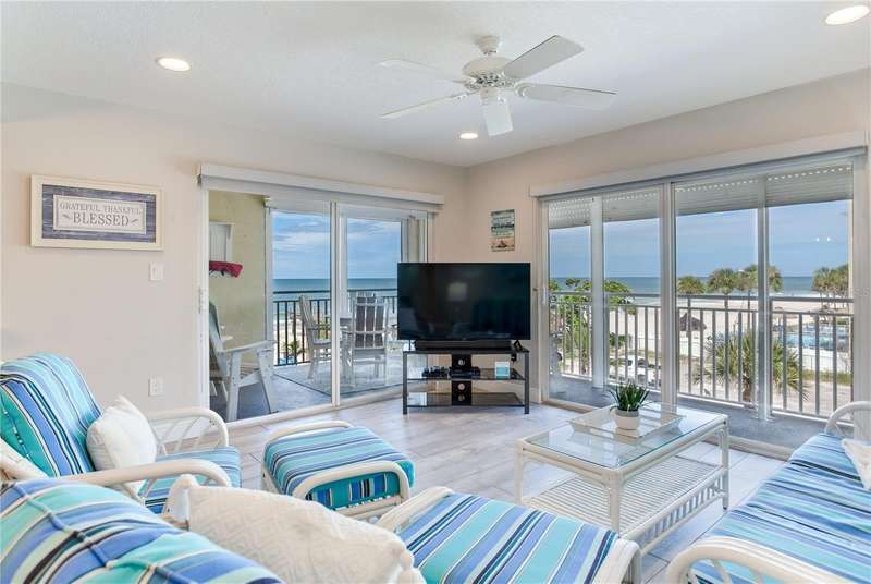 BEACHFRONT CONDO | ALL BEDROOMS ENSUITES | INCOME PRODUCING Welcome to this beautifully updated 3-bedroom, 3-bath condo in the heart of Redington Shores, offering the ultimate beachfront lifestyle with strong income potential. Every bedroom is an ensuite, ensuring comfort and privacy for owners and guests alike—perfect for a full-time residence, vacation getaway, or investment property. Step inside to an open-concept floorplan with a coastal-inspired design and breathtaking Gulf views. The gourmet kitchen features granite countertops, stainless steel appliances, shaker cabinetry, and a breakfast bar, flowing seamlessly into the dining and living areas. Walls of windows and sliding glass doors fill the space with natural light and open to a private balcony where you can enjoy morning coffee or evening sunsets over the Gulf. The spacious living area and all three bedrooms are thoughtfully designed with modern finishes, recessed lighting, and tile flooring throughout for easy care. The primary suite offers a serene retreat with its own spa-style bath, while two additional guest suites ensure everyone has their own private space. Located in a Gulf-front community with direct beach access, covered parking, and a sparkling pool, this condo checks every box for Florida living. Plus, its proven rental history makes it an excellent income-producing property. Enjoy the best of both worlds—personal use and rental income—in a prime location just minutes from local dining, shopping, and entertainment.