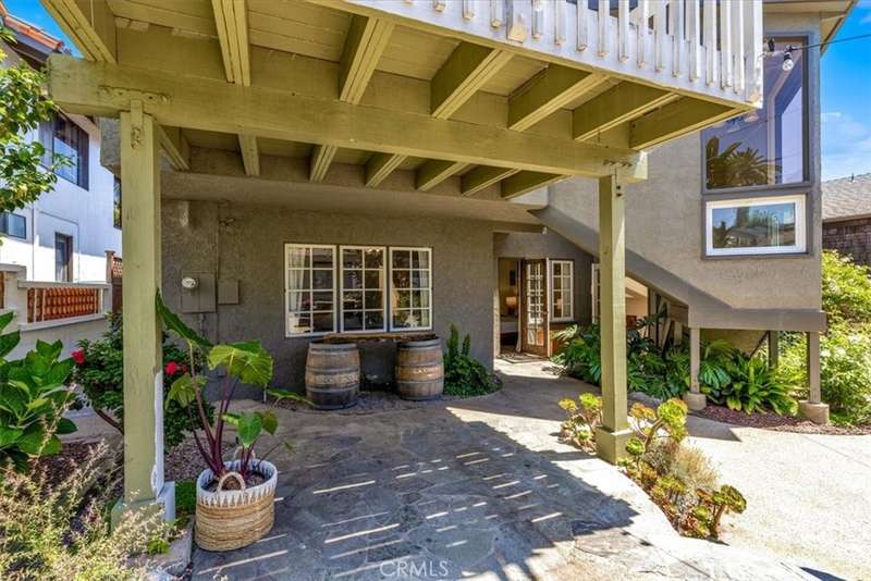 PRICE REDUCED! Best price per square foot in this neighborhood. Just a few blocks from the shimmering Pacific Ocean in the highly sought-after Southwest area, on a wider-than-average street between T Street and Lost Winds beaches. This charming and distinctive residence with ocean views from multiple decks--masterfully crafted by a local builder with gorgeous high beamed ceilings. The expansive, multi-level floor plan is thoughtfully designed to provide both flexibility and comfort. The main level showcases an inviting open-concept layout featuring a bright kitchen with stainless steel appliances, double ovens, a wine refrigerator, and granite counters. The adjoining dining area, accented by a blend of wood and Spanish tile floors and beautiful beamed ceilings, flows seamlessly onto a charming deck with ocean views--perfect for morning coffee or sunset dinners. A sunken living room with floor-to-ceiling picture windows and a stunning stone wood-burning fireplace creates a cozy yet elegant gathering space, while the spacious family room is bathed in natural light from impressive skylights overhead. Upstairs, the primary suite is a true retreat, offering complete privacy along with its own private deck, a relaxing sitting area, a generous walk-in closet, and an en-suite bath featuring a jetted tub, separate shower, and dual vanities. A secondary upstairs bedroom with its own ocean-view deck and en-suite bath could easily serve as an additional primary suite--ideal for guests or multi-generational living. On the lower level, you'll find two additional bedrooms that open directly to the private backyard oasis and share a well-appointed bathroom. A large office or studio provides the perfect space for working from home or pursuing creative passions. The backyard is a serene haven for gardening enthusiasts and entertainers alike, boasting mature fruit trees, a dedicated herb and vegetable garden, a cozy fire pit for gathering under the stars, and even a workshop shed for hobbies and projects. Enjoy the coastal lifestyle to the fullest--walk the trail just minutes away to watch the sunset, ride your golf cart throughout the neighborhood for fun seasonal activities, or surf the renowned Trestles surfing spot nearby. Don't miss this rare opportunity to own a truly unique coastal residence just steps from the Pacific Ocean, where timeless design, flexible living spaces, and outdoor serenity come together in one unforgettable home.