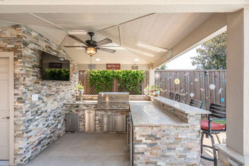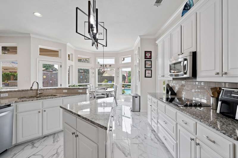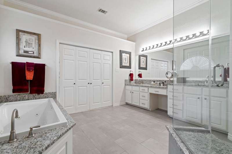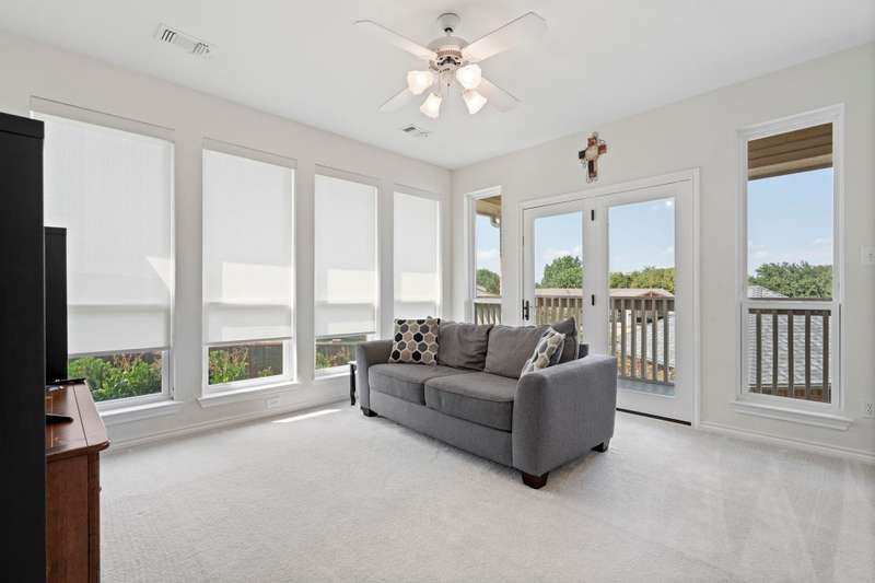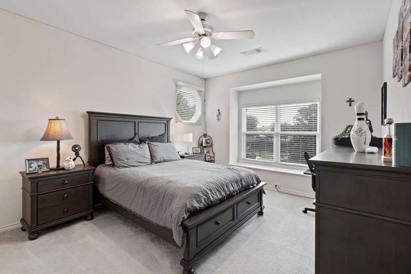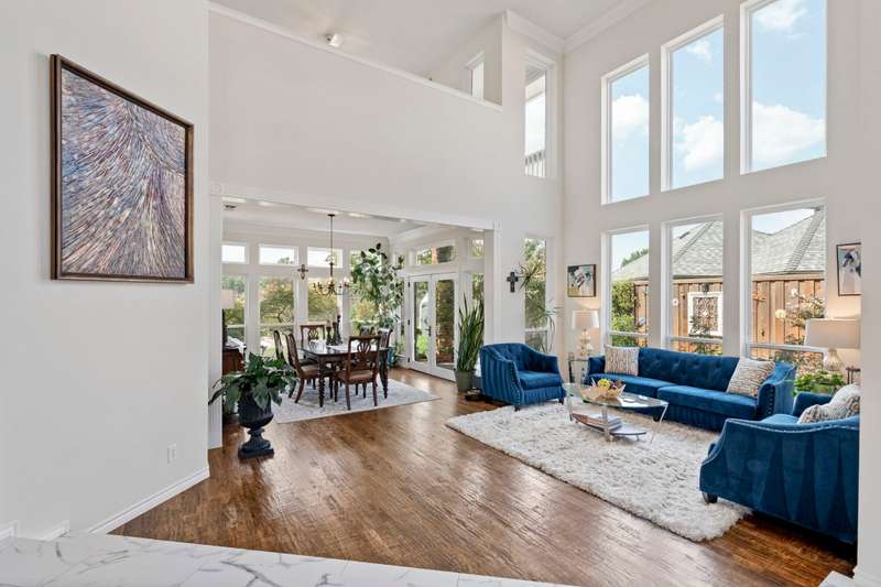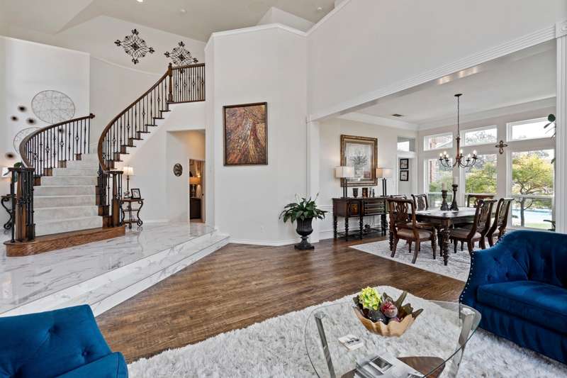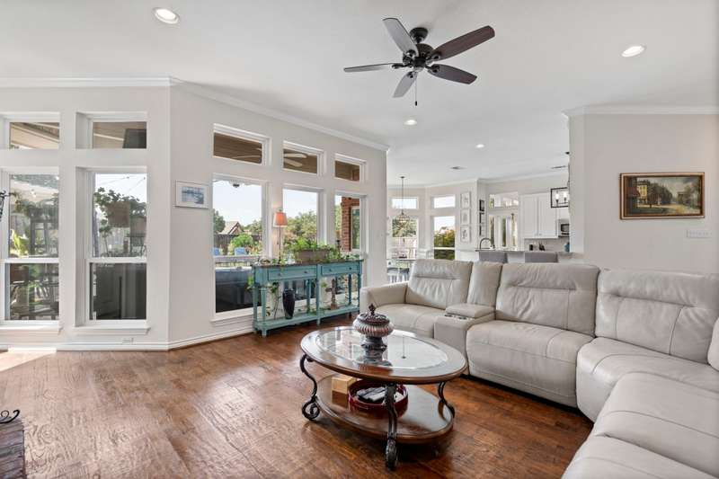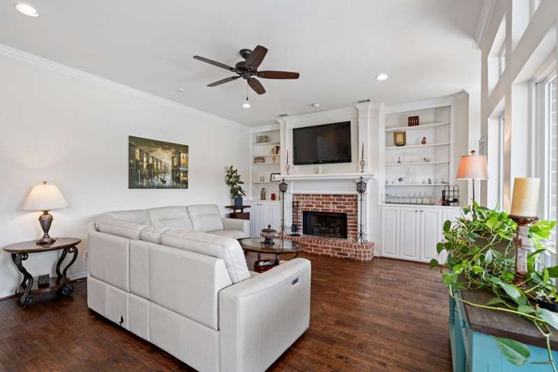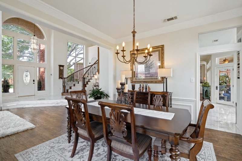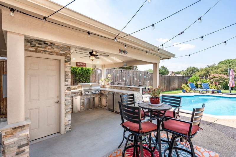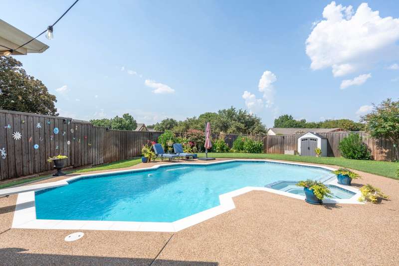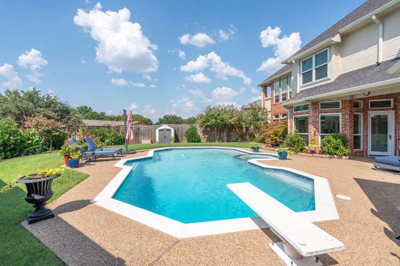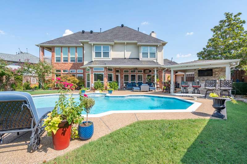 Impeccably maintained 2-story beauty on a fabulously manicured and landscaped cul-de-sac lot! 4 bedrooms, 4 baths, 3 living areas, pool, spa, open-air cabana with outdoor kitchen, dining, outdoor bath, and more! This property is a true oasis and is move in ready! Open entry with tall ceilings makes for an architectural statementdramatic, light-filled, and expansive. Entry is open to the formal living and dining room, featuring updated tile floors (2018) and handscraped hardwoods. Spacious family room is open to the kitchen, making this the ultimate space for entertaining. Kitchen features granite counters, island, cooktop, double ovens, pantry and a breakfast nook that overlooks the backyard and pool. Generously sized primary. The primary bath has a glass-enclosed shower, jetted tub, dual sinks with a vanity, separate WC and an oversized closet. Upstairs hosts an additional living space, 2 bedrooms, 2 baths, a balcony and a huge walk-in attic, great for storage or has the potential to be finished out for additional space. Other features and updates include pool overhaul (2025), outdoor kitchen (2023), plantation shutters, 3 HVAC units replaced 2019-2022, vinyl windows on exterior back of house (2021), glass replacement on front windows (2019), banister replacement (2023), downstairs bath (2023), exterior doors on back of home (2022), and hot water heater (2020)- complete list available on Transaction Desk. Feeds to Plano schools and is a top-notch location with easy access to shopping, dining, and major commuter routes. Neighborhood is also close to the Chisholm running and biking trails, beautiful parks, and a serene fishing pond. This home truly has it all.