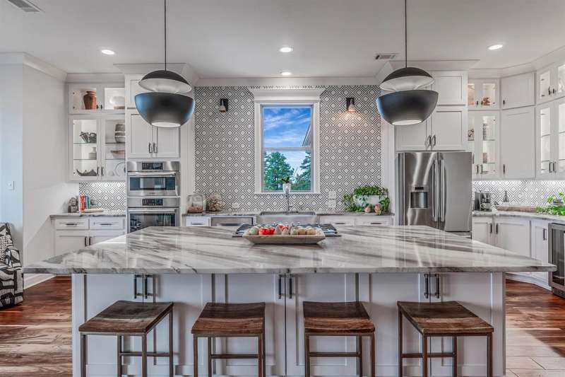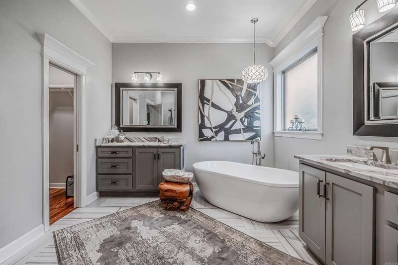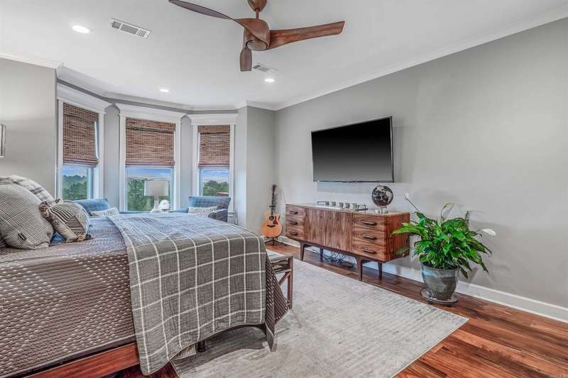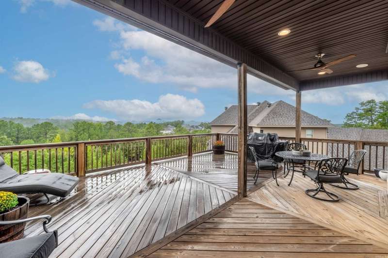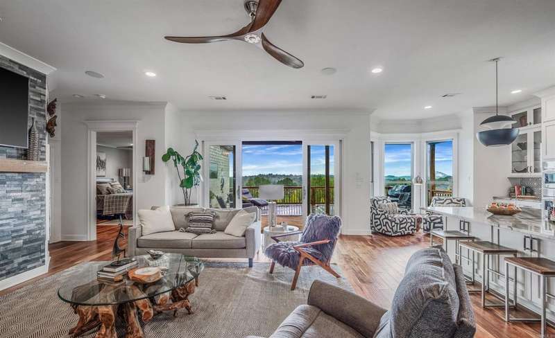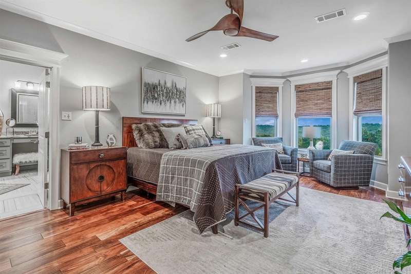 This exquisite custom built home showcases high-end finishes throughout, offering both elegance and comfort. Enjoy breathtaking view of Pinnacle Mountain from the expansive deck and through large windows that fill the home with natural light. Every detail has been thoughtfully designed to create a serene and luxurious living experience. Kitchen features ceiling height cabinets, wall oven, built in microwave, stainless appliances and farm sink. Main bathroom has dual sinks, tons of storage, walk-in closets, soaker tub and a sleek shower. Rich acacia hardwood throughout most of the home with tile in bathrooms. Features of the laundry room include sink, generous cabinet storage and a cozy window seat with storage underneath. Surround sound in family room, pool room and on the deck. Garage has mini split, epoxy floors. Beautiful view of Pinnacle Mountain from the partially covered deck to watch amazing sunsets. Storage area under the home.