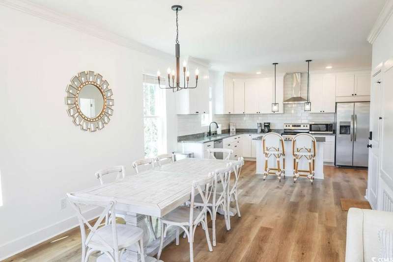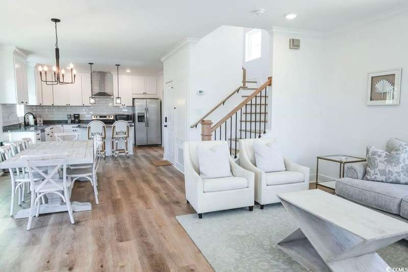 You WONT find another opportunity like this! Completely turn-key rental, setup by the top 1% performing AirBNB operators in the South Strand. Newly constructed, Charleston-style row house (1 of 3 available). These homes are ready to enjoy and rent today. Don’t lift a finger, everything is ready for you! Huge TVs in every room. Full professional Lorex Security System in place. Luxurious bathrooms with soaker tub. Outdoor shower. Huge enclosed and climate-controlled storage / golf cart garage on ground level. Enjoy the shade of 100-year-old oak trees from your porch and watch the nearby pond at sunset. Professionally decorated by an interior design team, you won’t find a more beautiful retreat. Sold fully furnished. Ample parking. A beautiful, clean designer space, built with care and attention to modern style. A few short steps to the beach (visible from the home). Everything your family needs to make your vacation a memory to last! This home boasts an expansive living room, beautiful kitchen with island, a large dining area, 5bedrooms, and 3.5bathrooms.