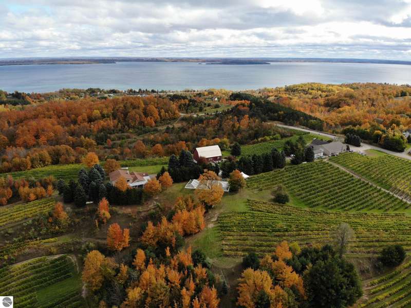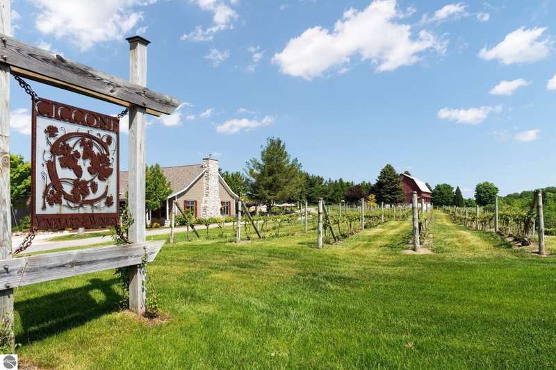 Build your legacy in Leelanau County with this once-in-a-lifetime opportunity. Ciccone Vineyard and Winery is a sprawling estate with a strong brand in an ideal location, and an incredibly picturesque property with unobstructed views of Grand Traverse Bay from many vantage points. This trophy opportunity is completely turn-key with a successful wine and event business, as well as a Winemaker's home or bed and breakfast accommodations. Ciccone's award-winning wines are made exclusively from estate-grown grapes - produced and bottled on-site. Ciccone has a superb staff, a huge and growing wine club following, and the historic barn and event spaces are well-booked throughout the year. Built in 1990, the two story Winemaker's home has gorgeous views in all directions - with 5 bedrooms, 4.5 bathrooms, a large open main-level floor plan, immaculate grounds, and lots of outdoor entertainment spaces, the home has multiple potential uses including bed and breakfast, event guest space, and more. The kitchen has many updates including newer cabinets and counters, and the living areas all point to the views of the bay or the adjacent sprawling vineyard. The home is freshly painted, and has adequate storage areas as well as an attached three car garage. The Winemaker's home is also on its own 2 acre lot, which could be beneficial for flexible uses - or, it's a lovely primary home and perfectly positioned to oversee the entire Ciccone operation. In addition to the existing operation and lovely home, there is expansion potential as well. Plans for an onsite cafe, new production building, expanded vineyard potential, and event pavilion are all in hand and can be shared with the next steward of the property. The property consists of multiple parcels, which could be a flexible benefit as well. Sip award-winning wine from the back patio or the historic barn, overlooking sprawling vineyards, and a bay of blue. This Leelanau experience is definitely one to see in order to appreciate!