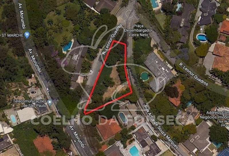 Terreno com 1,600 m² de área total. a 15 metros da Avenida Morumbi Esquina com ruas e praça, em local de fácil acesso as marginais, Próximo a Casa da Fazenda, Palácio do Governo, Hospital Albert Einstein e a ponte sobre o Rio Pinheiros a 5 minutos.