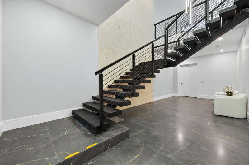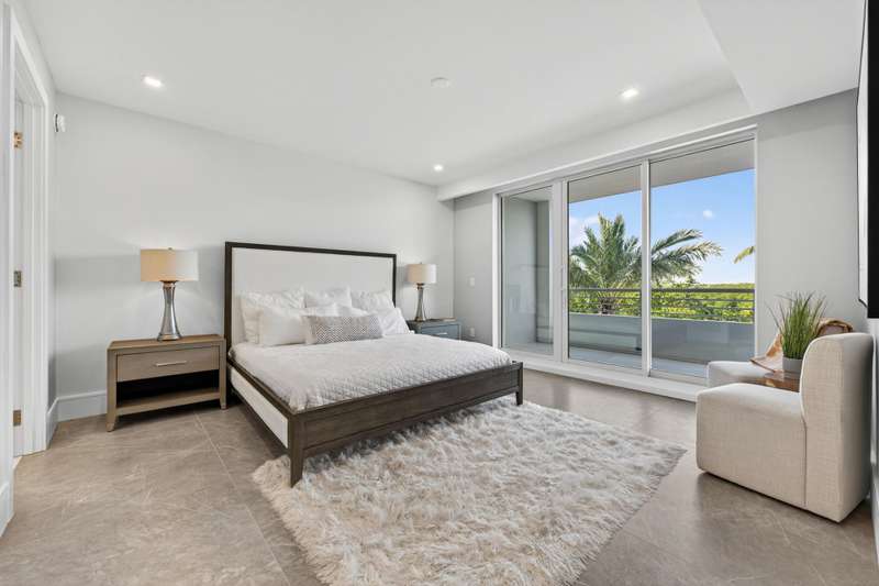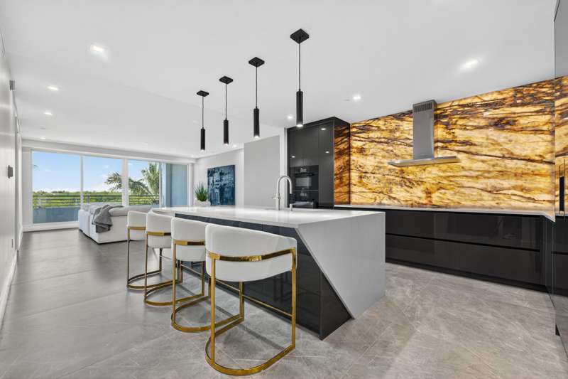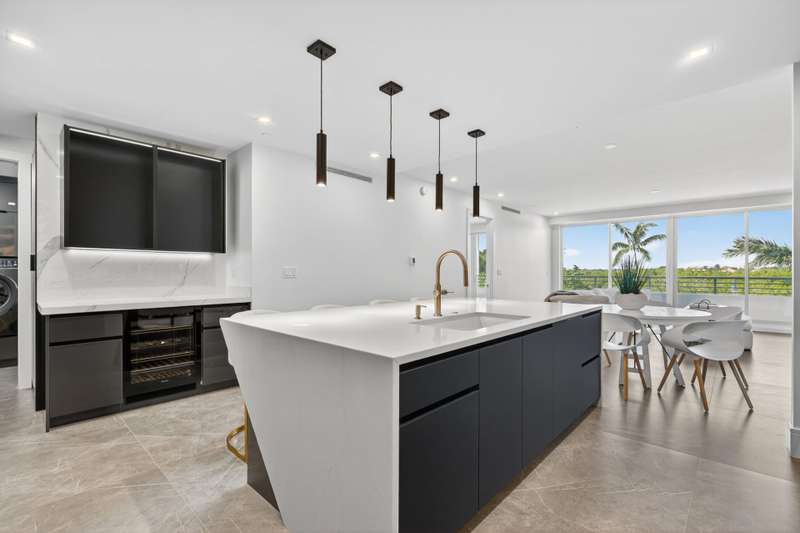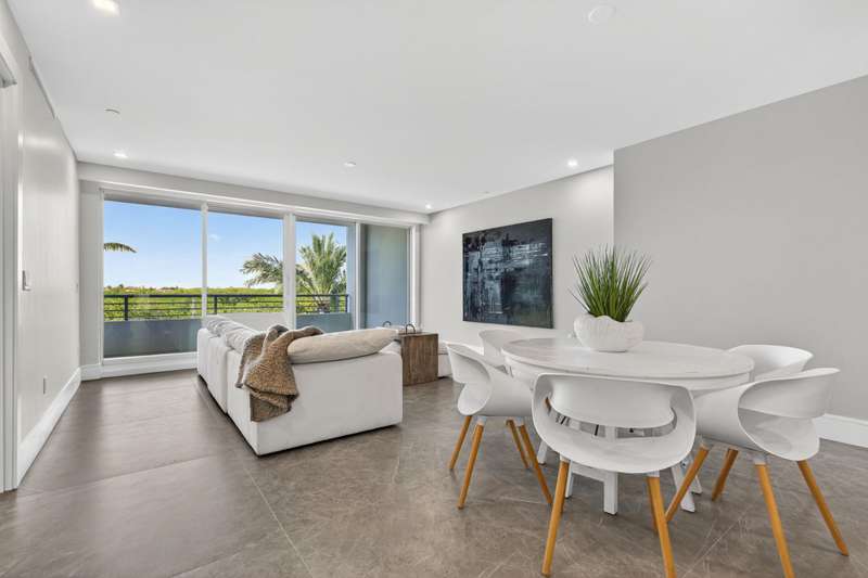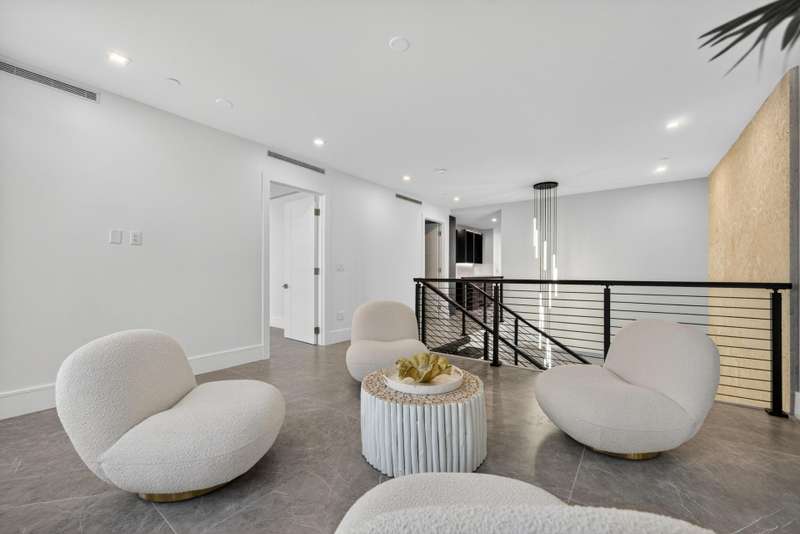 Introducing an exceptional designer condominium built in 2025, offering 2 bedrooms, 2 bathrooms, and a powder room, complemented by a spacious loft and a dramatic grand foyer with ample room for an office. This residence features two expansive covered balconies at the front and back of the building and is uniquely connected to its own private, climate-controlled two-car garage--an unmatched convenience in todays market. Every detail has been thoughtfully curated, blending modern elegance with seamless indoor-outdoor living.The entryway immediately captivates with a floating staircase, soaring 20-foot ceilings, and a statement designer chandelier, setting the tone for the open layout. The loft connects effortlessly to the gourmet kitchen and great room, all finished with oversized
