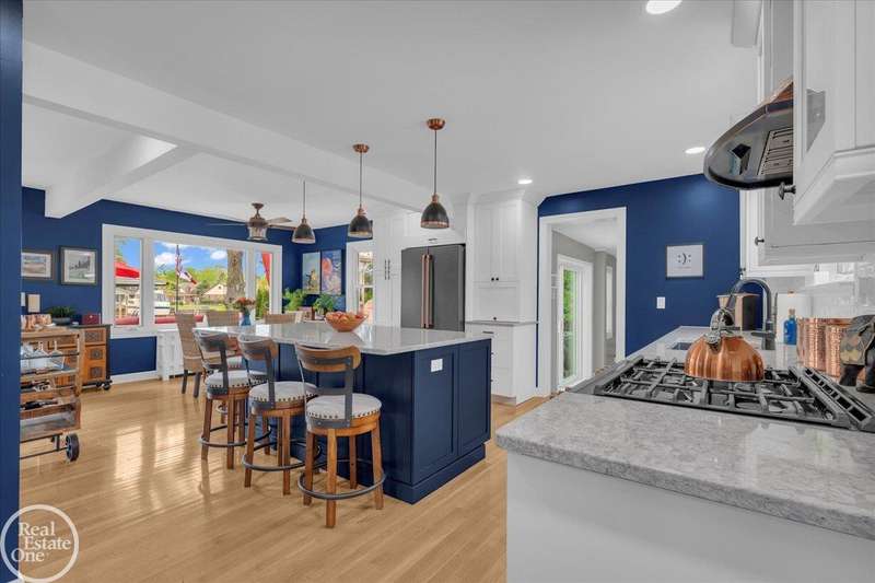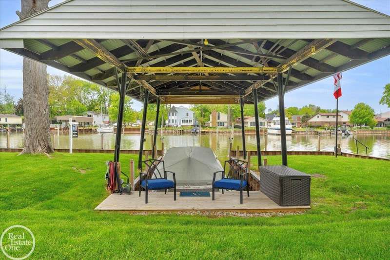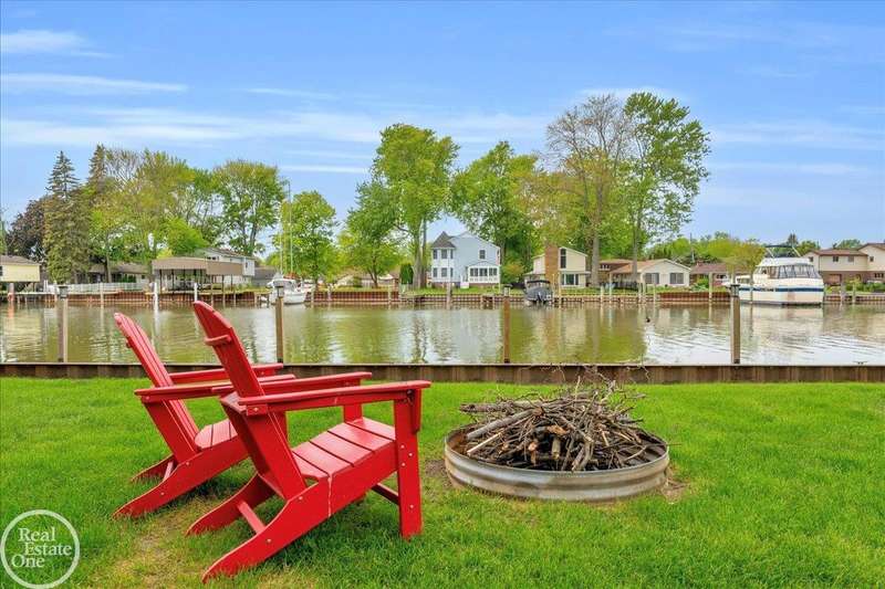 RIVERFRONT SHOWSTOPPER - DOUBLE PARK LIKE LOT - TURNKEY & UPDATED! Don't miss the opportunity to call this gorgeous colonial gem HOME. It's move-in ready and situated on a rare double-wide lot with lake access in the heart of Boat Town, U.S.A. You'll be wowed by the gourmet chef's kitchen featuring a massive center island, Copper range hood, quartz counters, and panoramic water views that will take your breath away. Impeccable Upgrades Throughout: Rich hardwood floors, cozy fireplace for those crisp Michigan nights. Primary suite with updated private en-suite bath. Newer windows, doorwalls, roof, siding, and gutters. Embrace outdoor living on the 2-year-old party-sized deck with covered bar & huge fenced yard; perfect for cornhole tourneys with plenty of room for family & friends. There's also a rare covered boat well and a newer seawall. "A spec of dust would die of loneliness here!" This home is spotless, stylish, and ready for YOU to enjoy the good life on the water. Lock this one in before boating season returns--make Summer 2026 your best one yet!