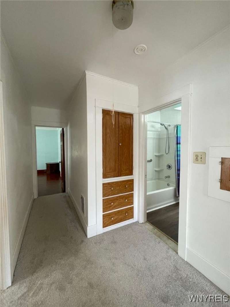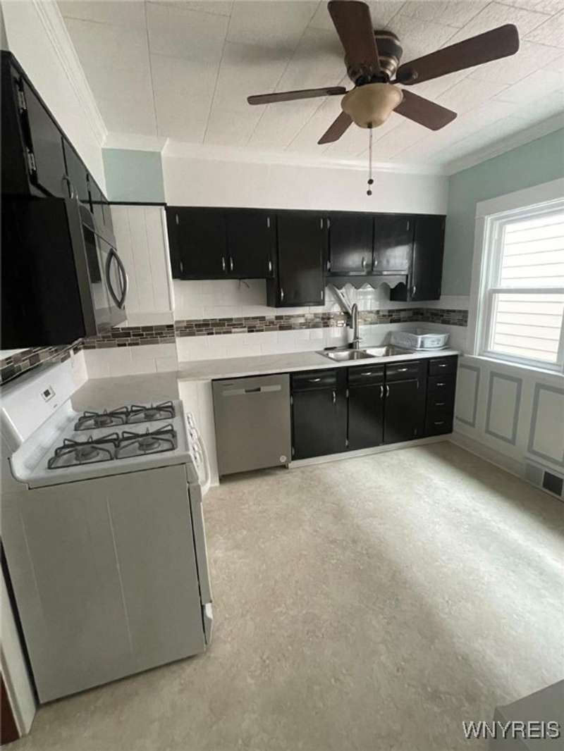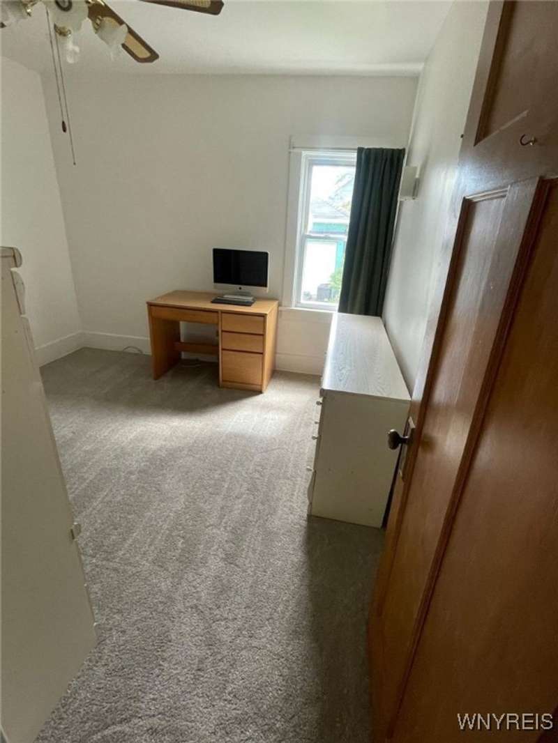 Beautifully renovated 3-bedroom, 1-bath first-floor apartment offering approximately 1,250 sq. ft. of living space in the heart of Kenmore. This spacious unit has been thoughtfully updated from top to bottom, featuring modern renovated kitchen & bathroom. All new appliances: refrigerator, above-counter microwave, and dishwasher. Freshly painted, refinished hardwood floors, new bedroom carpeting, updated windows, ceiling fans, and more. Personal laundry chute to basement with your own washer & dryer. Water included in rent. Enjoy the inviting front porch with seating, plus basement and partial garage storage. Ample street parking is available with winter driveway arrangement available. Easily accessible to Elmwood 20 Bus stop. One cat allowed with a refundable $400 pet deposit.