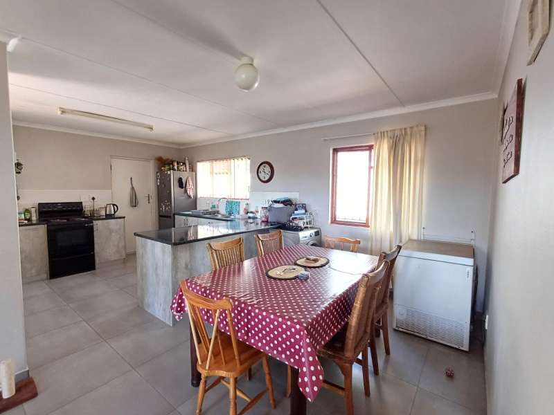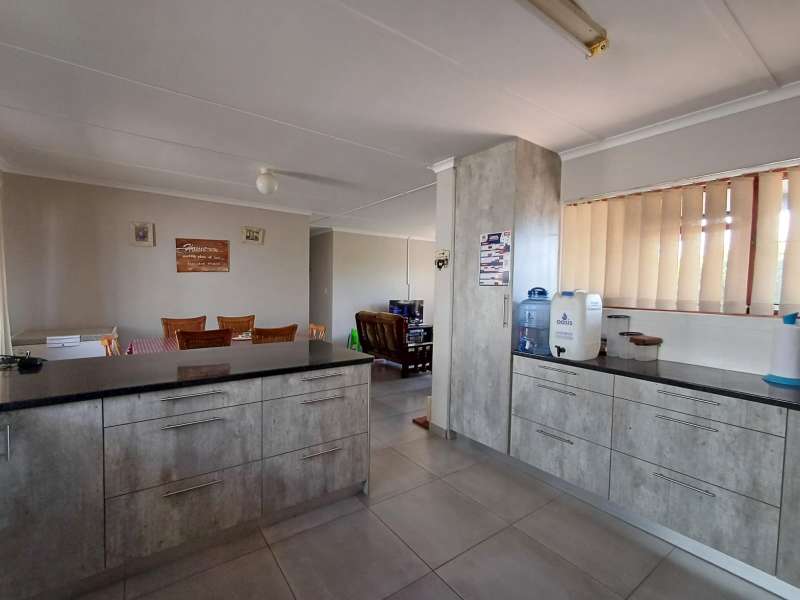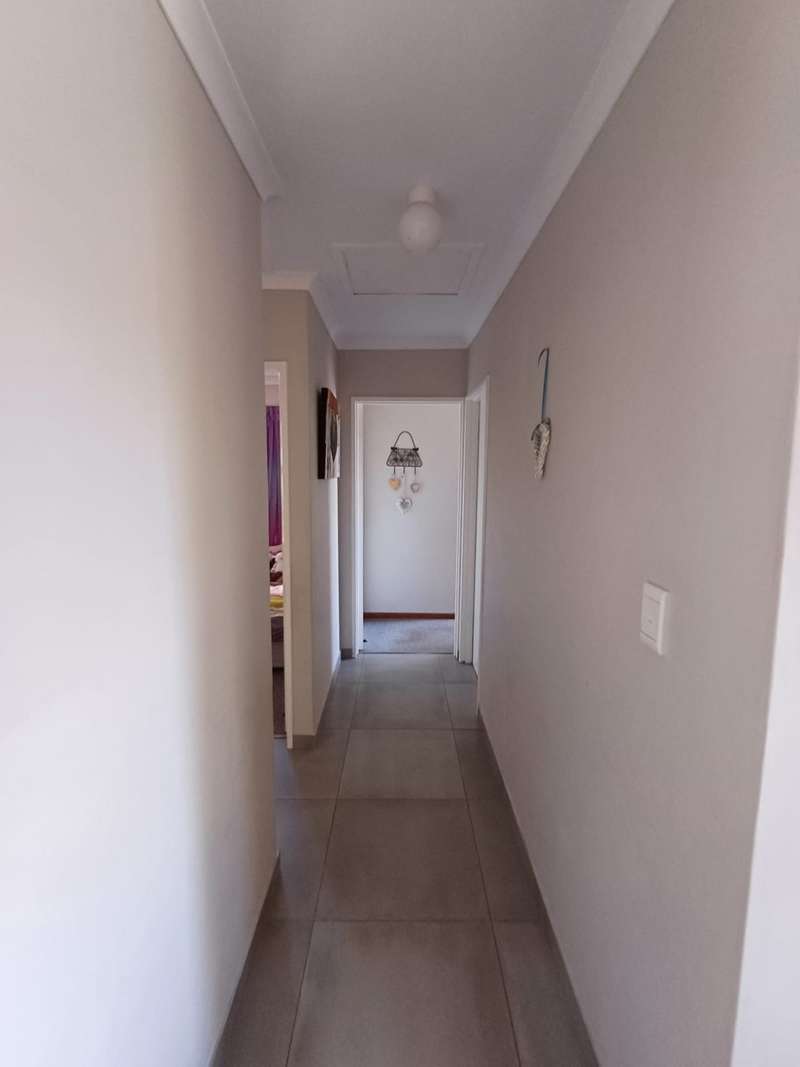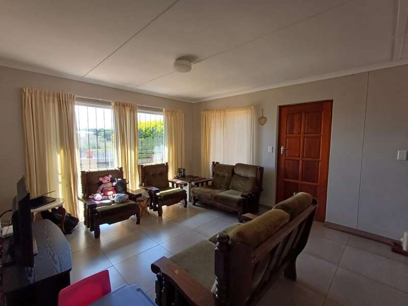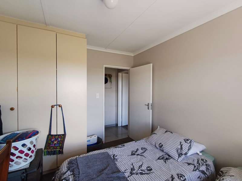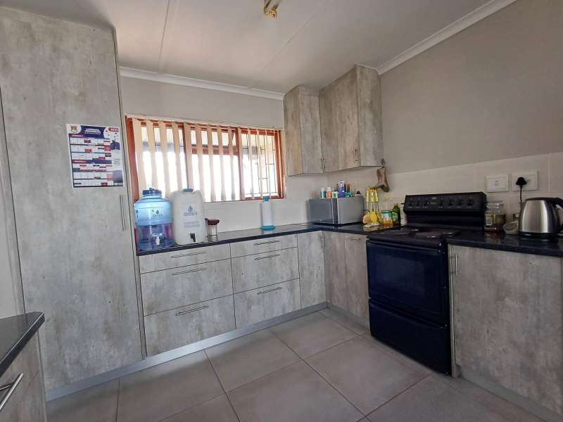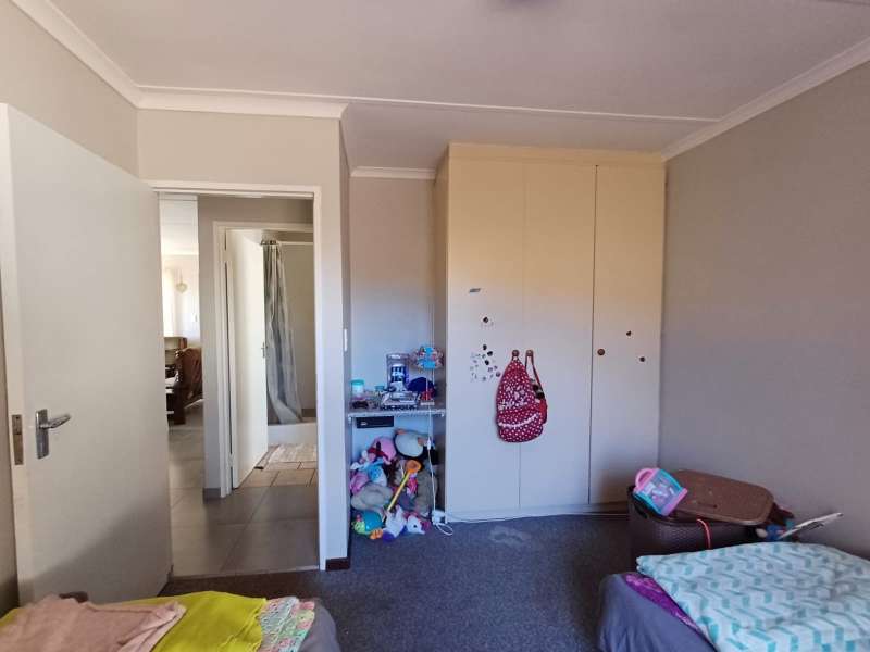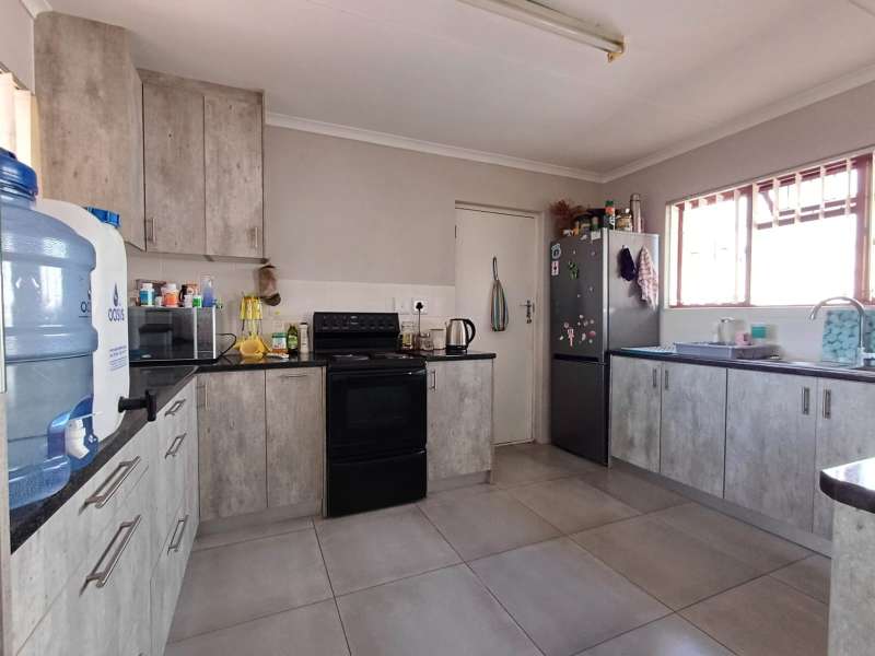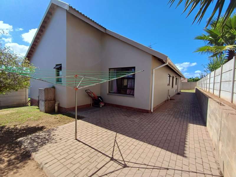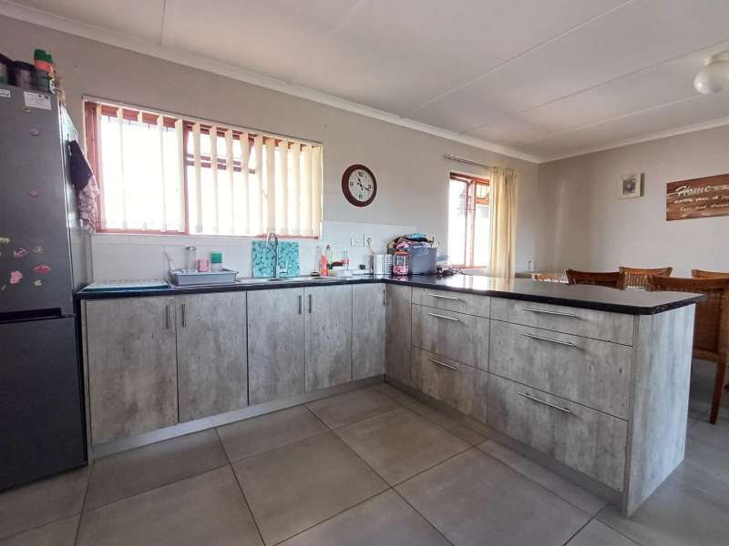 Very few houses gets in the market in this popular area, so do not waist time to get your house in this area. With a lovely view and large stand you can create a family home for kids and dogs. From the front door you enter into a open plan lounge/dining and kitchen area. The kitchen has been fitted with modern finishes cup boards. Glass sliding door leading from the lounge area onto a patio overlooking the playing area of the kids and dogs. One door leading from the kitchen directly into the double garage where you get the washing machine connections. Another door leading from the garage to the back yard. The house offers thee bedrooms and two bathrooms. The main bedroom is en-suite with a shower, basin and toilet. The family bathroom consists of a shower, bath, basin and toilet. All rooms are fitted with build-in cupboards. Wooden window frames with burglar bars in-front of all opening windows. Security gates in-front of all doors leading to the outside. Security entrance gates. Manual garage doors. Stand is fully walled. Registered with the PPRA.
