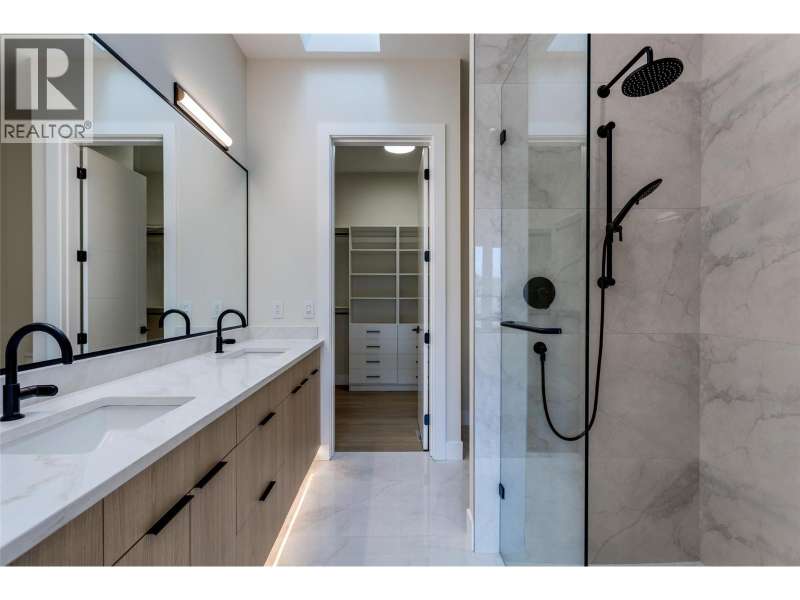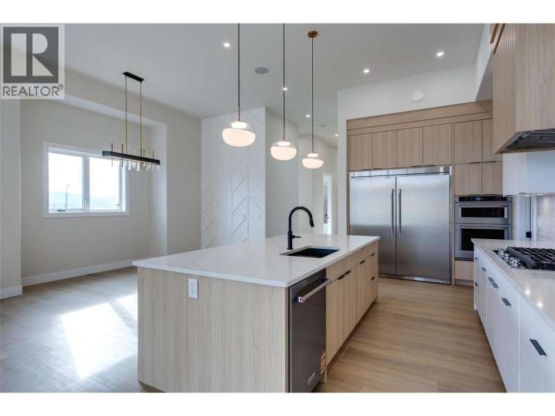 Proudly presented by WESCAN HOMES!!! Discover luxury living in this stunning walkout rancher Villa with no strata fees! Nestled in the prestigious Blue Sky neighborhood of Black Mountain, surrounded by the scenic golf course, this home is situated on a quiet cul-de-sac on a dead-end street – with a beautiful view of Black Mountain, offering the perfect blend of tranquility and convenience. Spanning 3,600+ sq. ft., this impeccably designed home boasts soaring ceilings and breathtaking mountain & valley views. The main residence features 3 bedrooms + den, a 4-piece ensuite, an additional 1.5 baths, and a spacious walk-in closet. A double garage, games room, and rec room provide ample space for relaxation and entertainment, complemented by built-in speakers for a premium audio experience. The high-end appliance package and quartz countertops enhance the elegant kitchen, while the deck and patio offer the perfect outdoor retreat. The legal 1-bedroom suite with optional den comes with a separate entrance, making it ideal for rental income or extended family. A generous-sized yard adds to the home’s appeal. Anticipated completion: end of Nov—don’t miss this incredible opportunity! ***Pictures posted are for right side unit which is finished. Light fixtures are different from right side unit*** (id:58403)