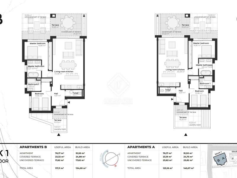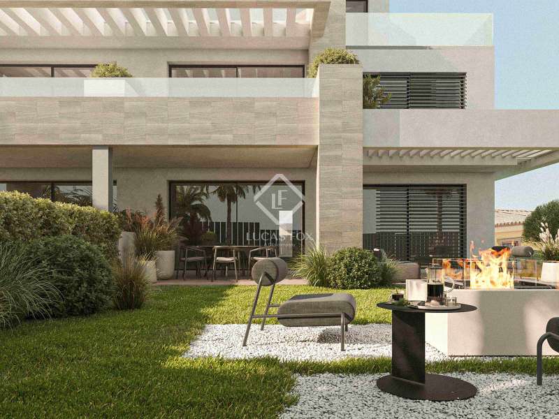 This elegant apartment offers a contemporary and sophisticated design, perfect for those seeking comfort in their daily lives. Layout and Spaces: - Bedrooms: Two spacious bedrooms, including a master bedroom with an en-suite bathroom, provide privacy and comfort. - Bathrooms: In addition to the en-suite bathroom, there is a second full bathroom and an additional guest toilet, all featuring modern and high-quality finishes. - Living Room and Kitchen: A spacious open-plan living-dining-kitchen area, fully equipped with high-end appliances, creates an ideal space for cooking and socializing. - Terraces: Large covered and uncovered terraces are perfect for enjoying the Mediterranean climate and clear views of the garden. - Private Garden and Additional Spaces: Includes a private garden and a laundry room, providing convenience and functionality for outdoor living. - Parking Space and Storage Room: The apartment comes with a garage parking space and a storage room. - Common Areas: The community offers gardens and a shared swimming pool. This ground floor apartment is an exceptional opportunity to acquire a luxury residence in one of the most exclusive areas, combining proximity to the beach, spacious indoor and outdoor areas, and stunning views.
