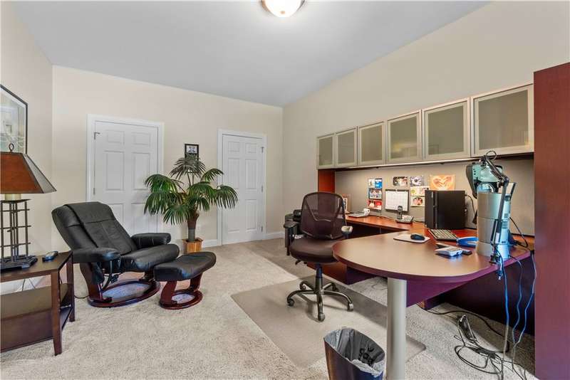Nestled at the end of a quiet cul-de-sac in the sought-after Edgewater at Oakmont community, this beautifully appointed paired cottage offers the perfect blend of comfort, style, & location. With stunning views of the Allegheny River, this 3 bedroom 2.5 bath home features a main-level primary suite, a rare & highly desirable find! Step inside & discover a warm & inviting interior, highlighted by a welcoming entry with powder room & guest closet, a large dining room allowing you to host friend & family events, a cozy living room with a gas fireplace focal point, & fully equipped kitchen with wood cabinetry, granite counters & stainless steel appliances. The floor plan flows seamlessly to a private side deck, boasting a retractable awning, ideal for outdoor entertaining or enjoying the peaceful riverfront atmosphere. Primary suite offers a walk in closet & a full bath with shower. Convenient 1st floor laundry equipped with washer & dryer. Upstairs find 2 generous bedrooms & a full bath.