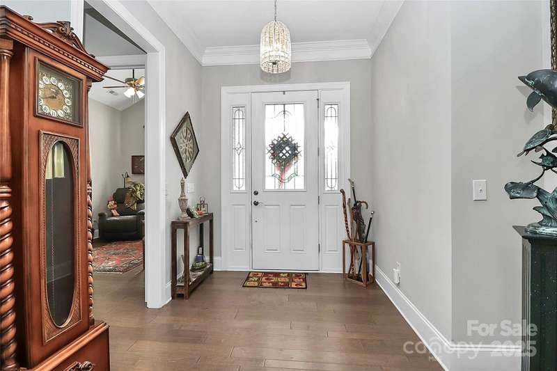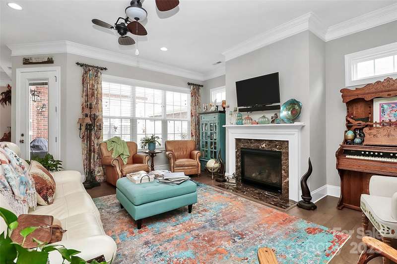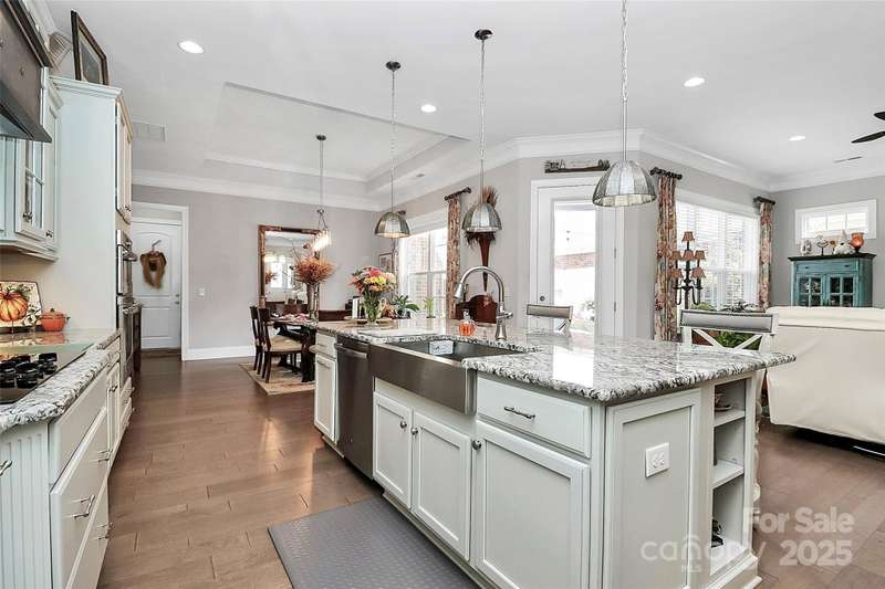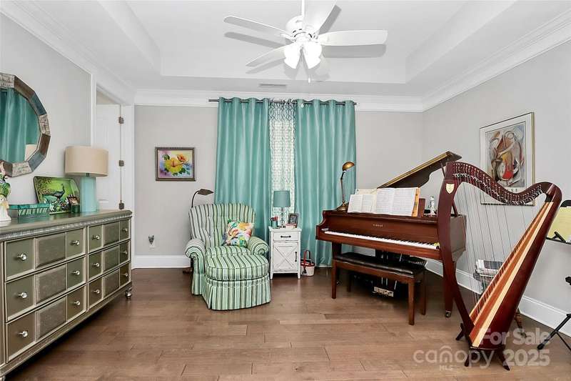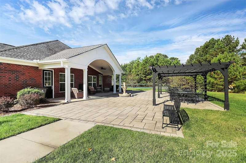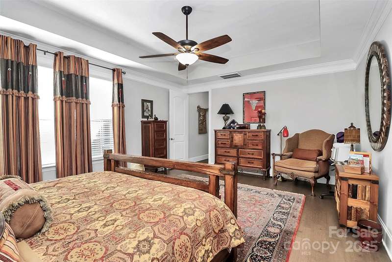 Beautiful, all brick, custom Ranch Style Home, Featuring a large rocking chair front porch. Side courtyard has a private patio, professional landscaping with irrigation system and a water feature that remains. Oversized attached garage with extra parking in the driveway. Interior has 10 foot ceilings, with open floor plan and hardwood flooring throughout. Large entry with hardwood floors, opening to the family room with gas fireplace. Cozy study with closet, that could be used as a 3rd bedroom, powder room off foyer. This home features two Primary Bedroom Suites- one in the front of the home, the other at the rear of the home. Front primary suite has a sitting area, whirlpool bath with ceramic tile. 2nd Primary Bedroom Suite also has a sitting area, large walk in closet, Double vanity with walk in shower, with two shower heads. Large kitchen, with custom French style exhaust hood, granite countertops with tile backsplash, GE Stainless Steel Appliances (to remain), and large island with sink. Tons of natural light in this home with hardwood floors throughout, Laundry/ Utility Room features 2 pantry/ closets with built in cabinets and a utility sink. Handicap accessible home.