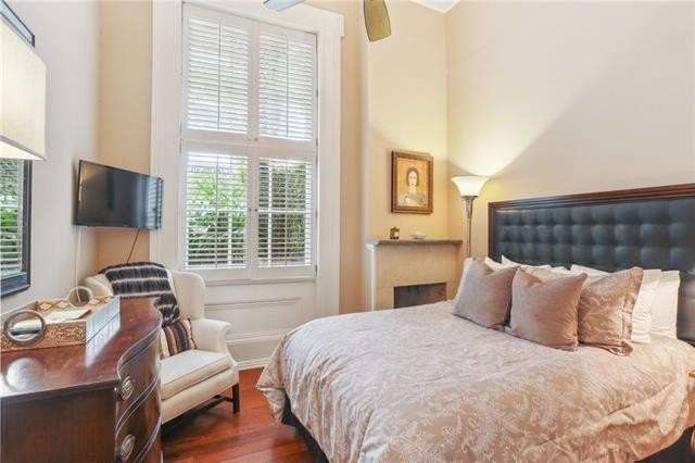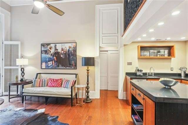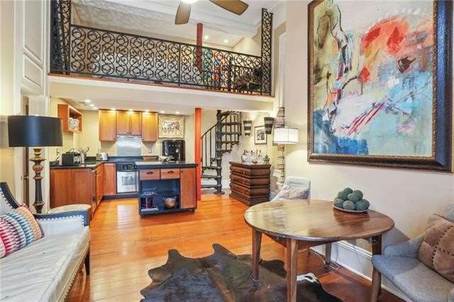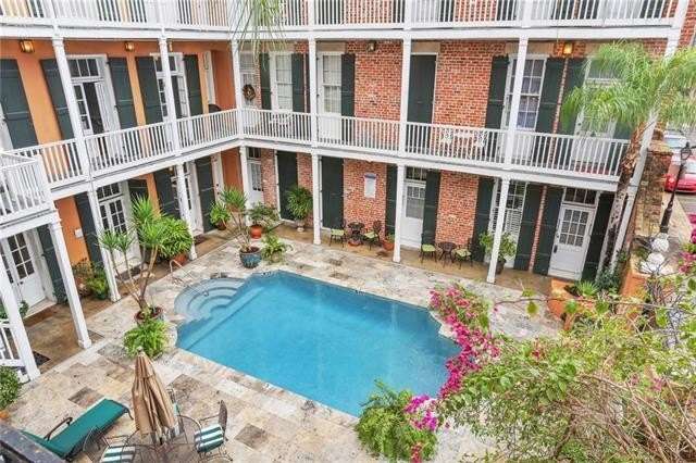 Beautifully renovated ground floor (no stairs!) 1 bedroom condo in one of the Vieux Carre's most historical buildings (The Beauregard House.) 14.5 ft soaring ceilings make this unit feel like a bygone era and there's a bonus loft with King size bed that sits above the stylish kitchen and bathroom. The most unique feature is a large private courtyard accessed by a working guillotine window from the living room. You can cook on your grill and enjoy the privacy of this hidden sanctuary surrounded by tropical vegetation and brick walls. There's also a common classic wrap around balcony overlooking Esplanade Ave. and a community sparkling salt water pool situated in a beautiful French Quarter courtyard. The property is located within easy walking distance to all the best offerings in the French Quarter and Marigny--this a great location in the residential section of the French Quarter! Sold furnished (minus artwork) right down to the linens--just move in and hang up your clothes!