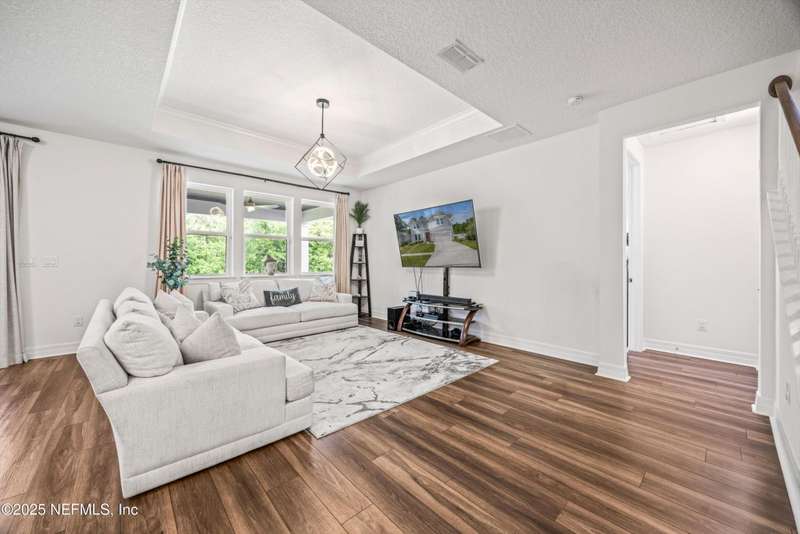 Welcome home to this beautiful home located in Grand Oaks in St. Johns, Florida. This like new home features 4-bedrooms, 2.5-bathrooms in an open concept with an office, casual dining area and a loft. The kitchen is nicely equipped, with white cabinets, stainless steel appliances, quartz countertops, and a large island with seating. It seamlessly connects to the casual dining area and family room, creating the perfect space for entertaining and cozy family gatherings. The casual dining room is ideal for both daily meals and formal settings. Sliding glass doors open to a private covered lanai, offering views of the preserve and access to the large back yard. The private office provides an ideal space to work from home or relax with a good book. The primary suite boasts a walk-in closet and a spa-inspired bathroom with dual vanities a walk-in shower and a soaker tub. Upstairs you'll find a loft and three additional bedrooms for added comfortable accommodations. As a resident of Grand Oaks, you'll enjoy resort-style amenities and easy access to shopping, entertainment, historic St Augustine and top-rated schools. Don't miss the chance to make this exceptional property your new home!