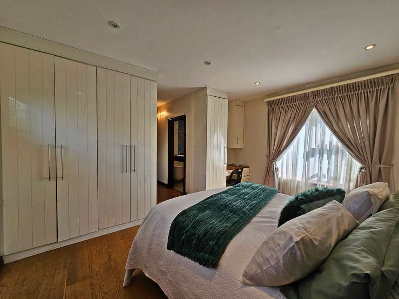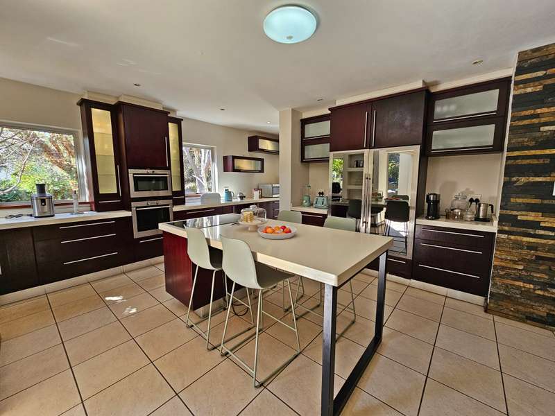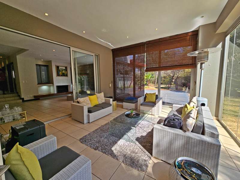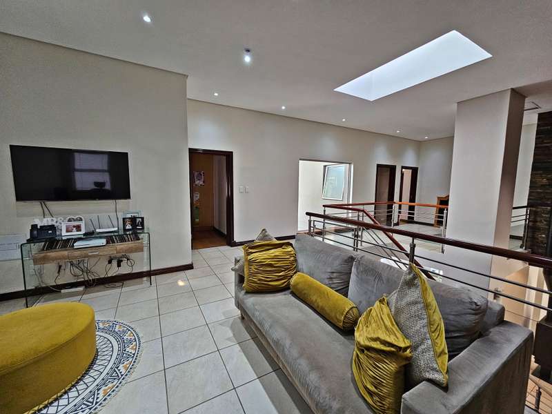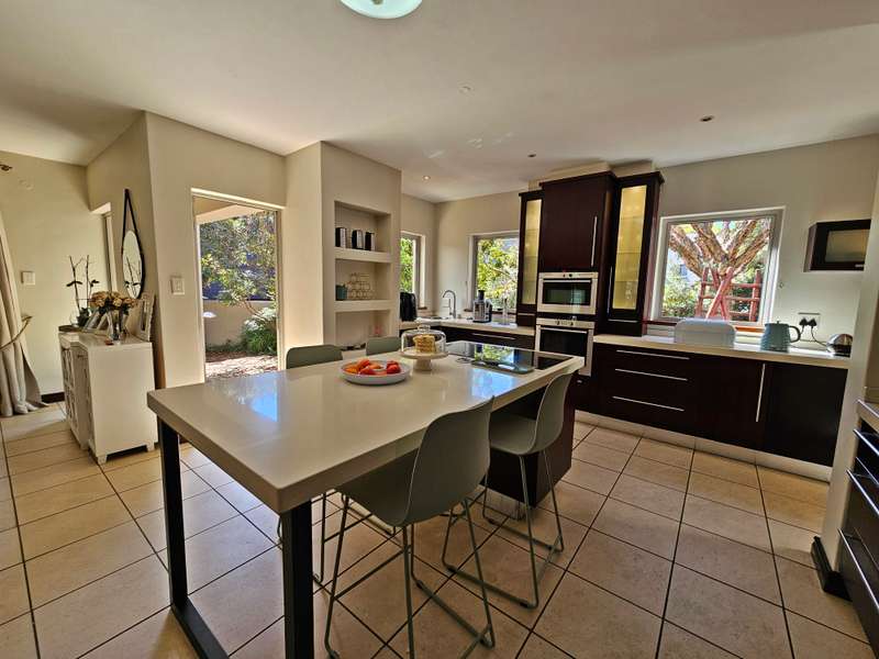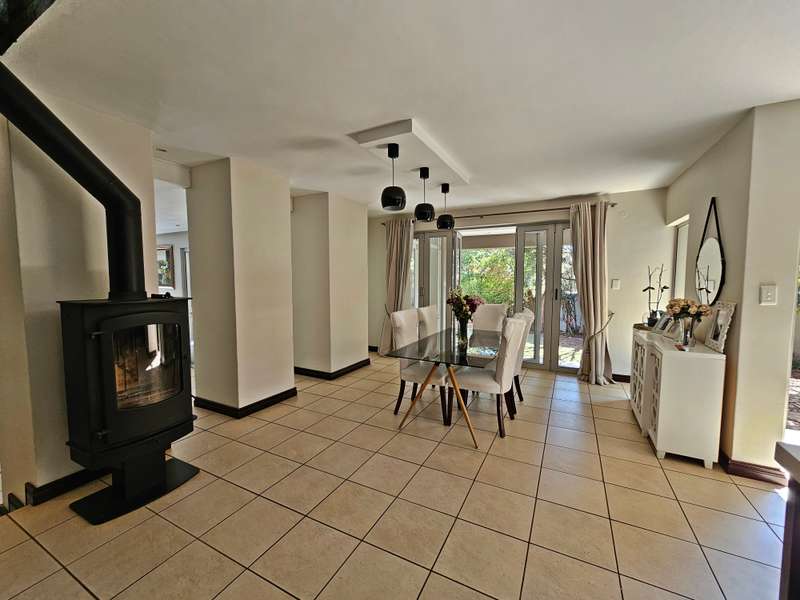 ***EXCLUSIVE MANDATE*** Welcome to your dream home, nestled in the heart of the sought-after Midstream Estate. This stunning 4-bedroom residence exudes luxury and comfort, designed with every detail in mind to offer a lifestyle of unparalleled elegance. Front Entrance: - A grand entrance welcomes you with a spacious driveway, perfect for accommodating guests. - Three secure garages provide ample parking and storage. Downstairs: - The home opens up to soaring high-volume ceilings, creating an airy and light-filled ambiance. - The expansive main lounge features a cozy gas fireplace, seamlessly flowing into a private lounge through sliding doors. This versatile space, with breathtaking garden views, is ideal for intimate gatherings or serene relaxation. - A semi-enclosed patio with a built-in braai overlooks the lush garden and sparkling swimming pool, making it a perfect spot for outdoor entertaining. - The dining area, complete with its own fireplace, is adjacent to a gourmet kitchen. The kitchen boasts a stylish center island, a glass hob, an oven, a microwave, and a door that opens to the outdoors, inviting fresh air and natural light. - A spacious private scullery offers convenient space for three appliances, ensuring the kitchen remains clutter-free. - A guest bathroom with a basin, toilet, and shower is conveniently located on the ground floor. - Additional features include a linen closet and separate staff accommodation with its own bedroom and bathroom. Upstairs: - Ascend to a cozy PJ lounge, perfect for family movie nights or unwinding with a good book. - Three generous family bedrooms, each with its own en-suite bathroom, provide comfort and privacy for everyone. - One private toilet - The luxurious main bedroom is a true retreat, featuring a walk-in closet, en-suite bathroom, private balcony, air conditioning, and a ceiling fan for ultimate comfort. This exceptional home offers the perfect blend of modern elegance and functional living spaces, all set within the prestigious and secure Midstream Estate. Make this sanctuary your own and experience the epitome of luxury living.