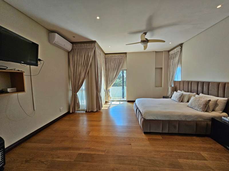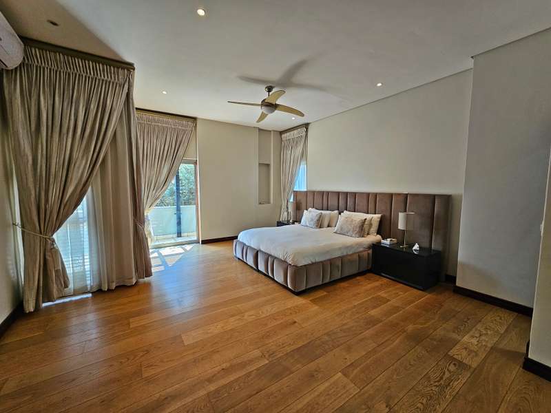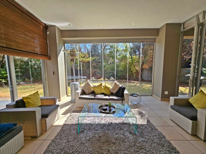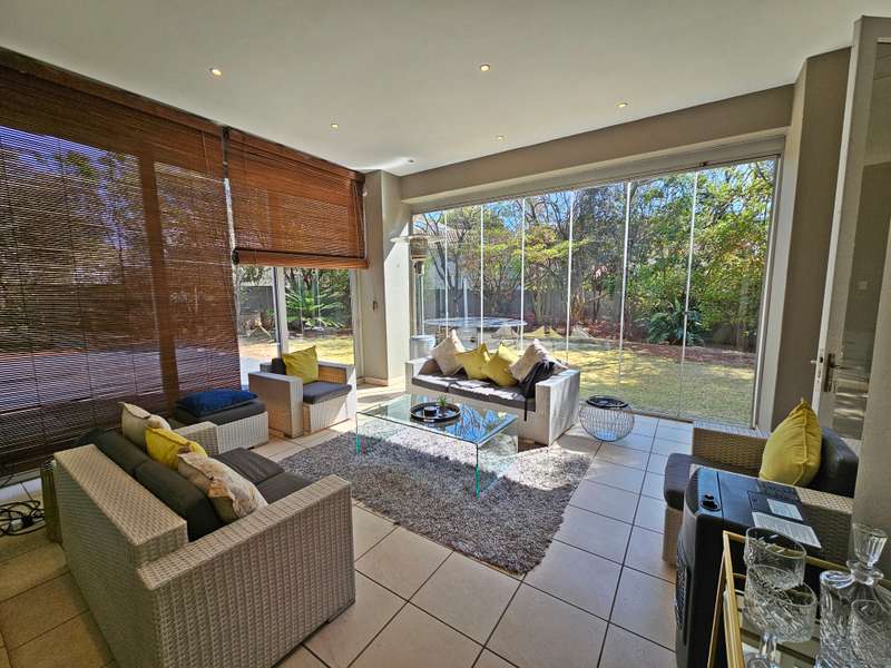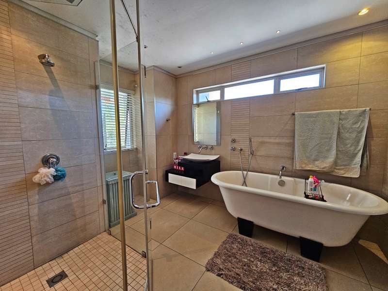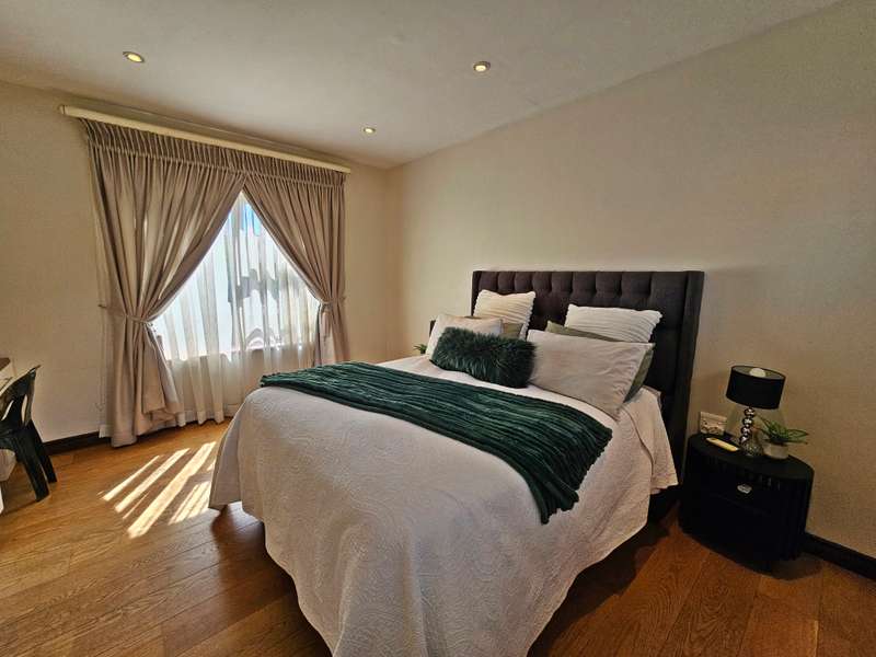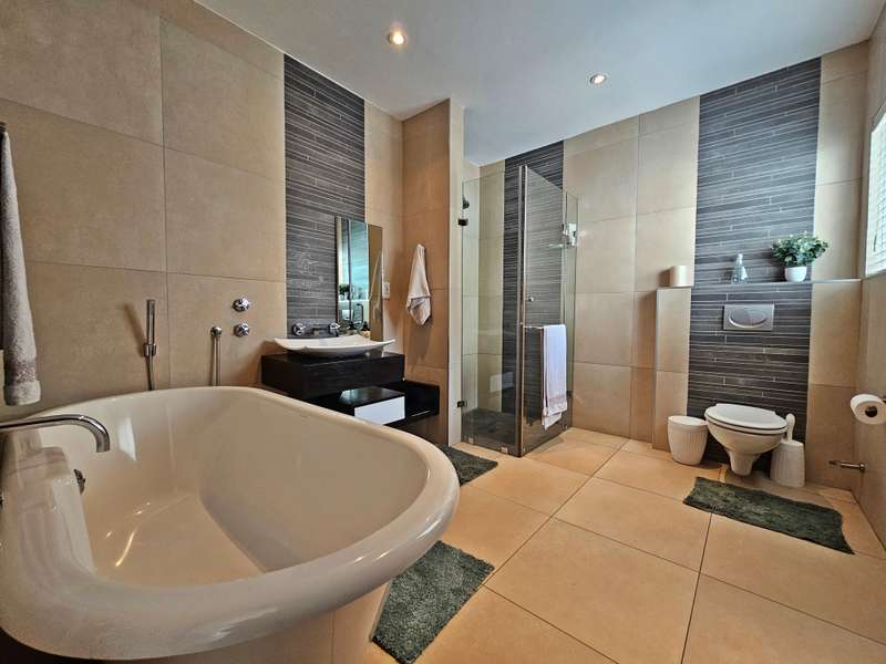***EXCLUSIVE MANDATE*** Welcome to your dream home, nestled in the heart of the sought-after Midstream Estate. This stunning 4-bedroom residence exudes luxury and comfort, designed with every detail in mind to offer a lifestyle of unparalleled elegance. Front Entrance: - A grand entrance welcomes you with a spacious driveway, perfect for accommodating guests. - Three secure garages provide ample parking and storage. Downstairs: - The home opens up to soaring high-volume ceilings, creating an airy and light-filled ambiance. - The expansive main lounge features a cozy gas fireplace, seamlessly flowing into a private lounge through sliding doors. This versatile space, with breathtaking garden views, is ideal for intimate gatherings or serene relaxation. - A semi-enclosed patio with a built-in braai overlooks the lush garden and sparkling swimming pool, making it a perfect spot for outdoor entertaining. - The dining area, complete with its own fireplace, is adjacent to a gourmet kitchen. The kitchen boasts a stylish center island, a glass hob, an oven, a microwave, and a door that opens to the outdoors, inviting fresh air and natural light. - A spacious private scullery offers convenient space for three appliances, ensuring the kitchen remains clutter-free. - A guest bathroom with a basin, toilet, and shower is conveniently located on the ground floor. - Additional features include a linen closet and separate staff accommodation with its own bedroom and bathroom. Upstairs: - Ascend to a cozy PJ lounge, perfect for family movie nights or unwinding with a good book. - Three generous family bedrooms, each with its own en-suite bathroom, provide comfort and privacy for everyone. - One private toilet - The luxurious main bedroom is a true retreat, featuring a walk-in closet, en-suite bathroom, private balcony, air conditioning, and a ceiling fan for ultimate comfort. This exceptional home offers the perfect blend of modern elegance and functional living spaces, all set within the prestigious and secure Midstream Estate. Make this sanctuary your own and experience the epitome of luxury living.