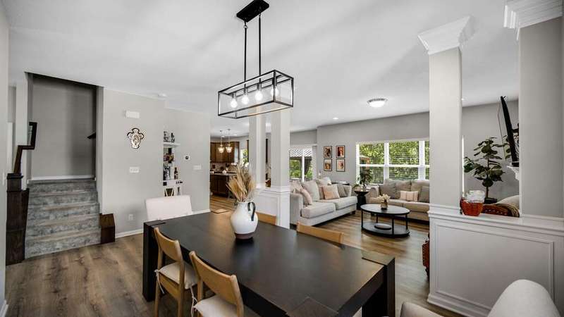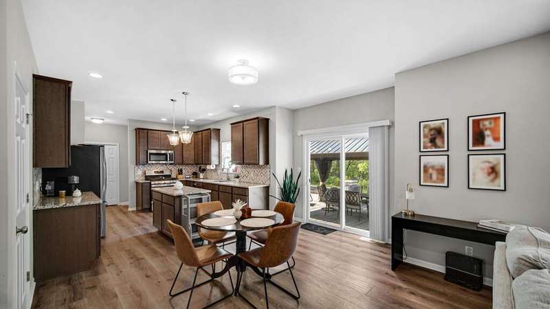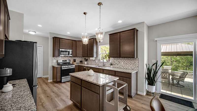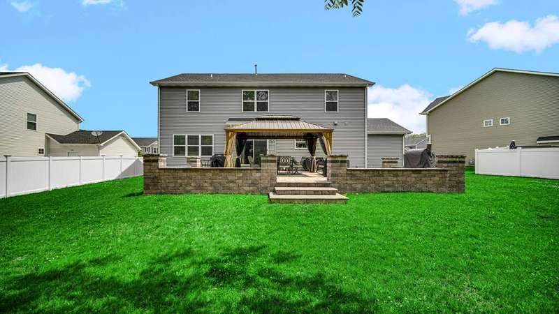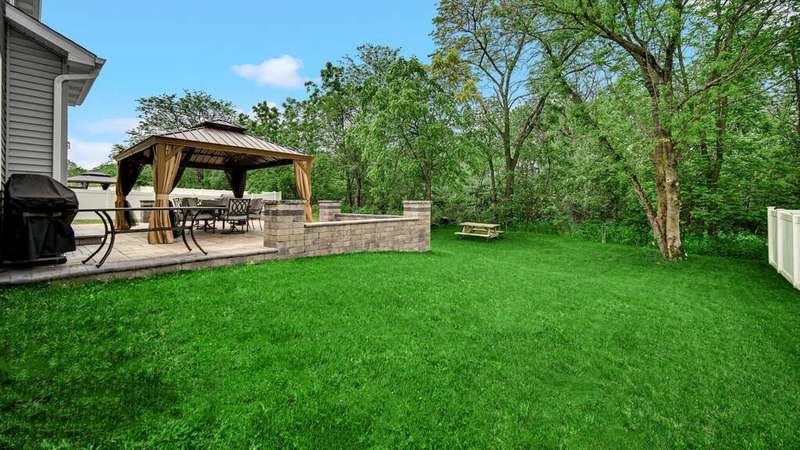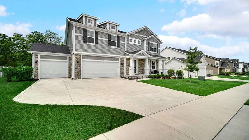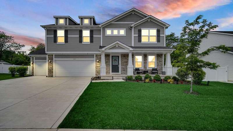 BETTER THAN NEW, 2-Sty Home w/ WOODED BACKDROP offers 4Bdrms/2.5Bths, Bonus LOFT, Main Flr Office, & Paver Patio w/ Stone Wall/Columns, overlooking PEACEFUL SETTING! Landscaped Exterior w/ 3 Car Garage and Covered Front Porch WELCOMES YOU into Spacious Layout boasting TONS of UPGRADES including 9Ft Ceilings throughout Main Lvl. Luxury, Wide-Plank Flrng flows throughout Living Space including Office w/ FRENCH DOORS. Dining Rm is separated from Family Rm by Architectural Pillars. OPEN CONCEPT LAYOUT features Family Rm w/ FIREPLACE and Recessed Lighting, which leads to SPACIOUS Kitchen. Tall Cabinetry is highlighted by Marble Tile Bcksplsh and GRANITE Cntrps, including Center Island w/ Pendant Lighting. Upper Lvl has Loft in Addition to 4Bdrms, including Primary Suite w/ Double Sink Vanity, Soaking Tub, & W-I Shower w/ Tile Surround. Full Bsmt w/ Rough-in for Bath offers Future Living Space. LOW INDIANA TAXES w/ Homestead Deduction for qualifying Owner Occupants - Call for Details!