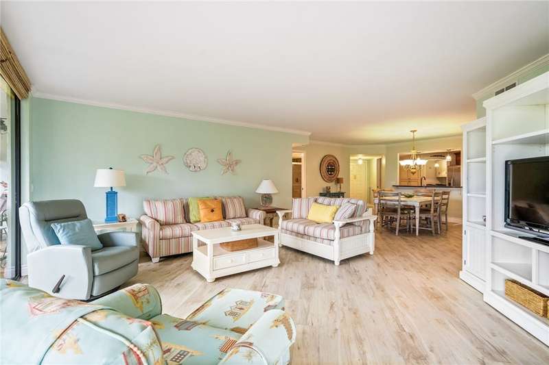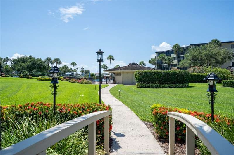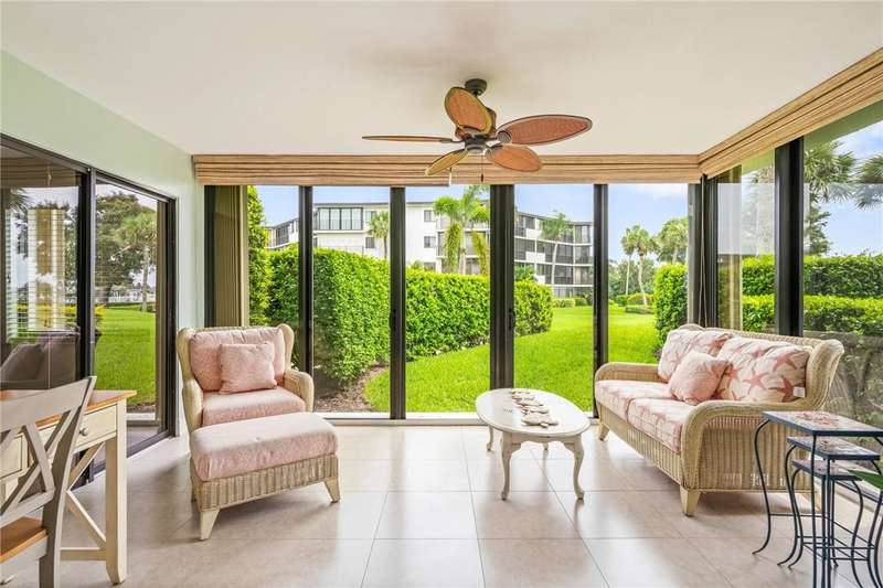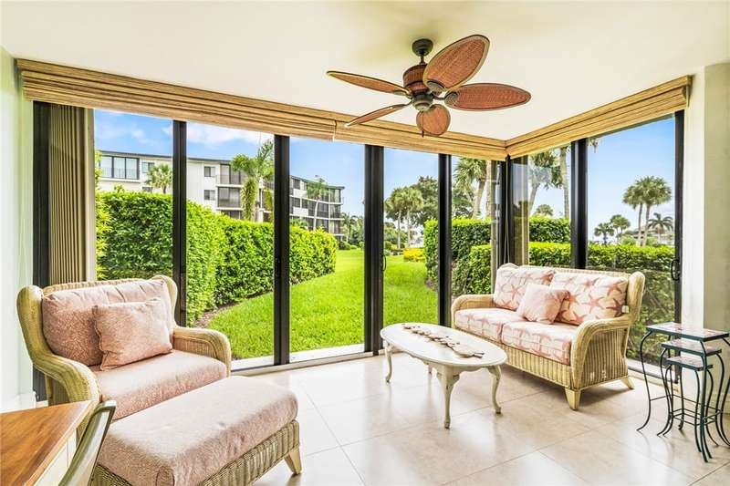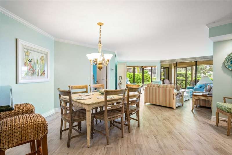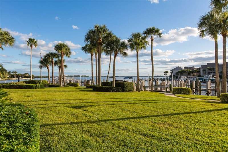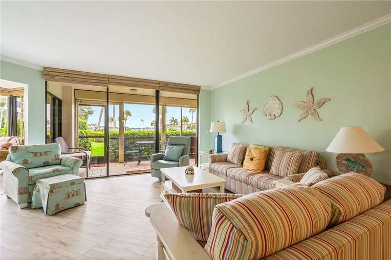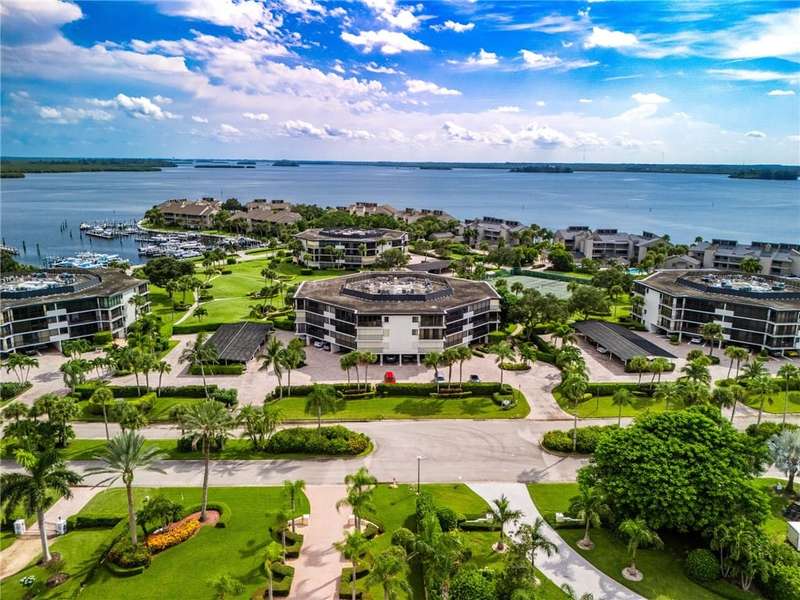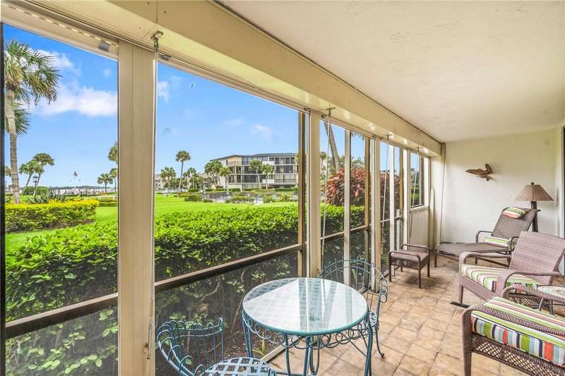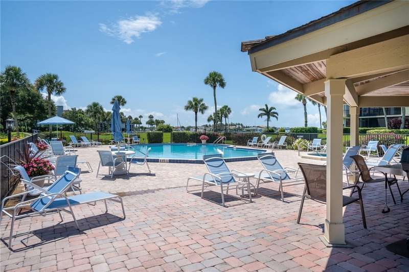 Owner financing avail with 10% down, 5% fixed rate 3-5 year balloon! Live the resort lifestyle with this carefree fully furnished/turnkey first floor 1800 sq ft condo with Marina & Pool views! Warm inviting kitchen fully stocked, with open view to living areas with new luxury vinyl floors! Split bedroom plan, large porch area with partial impact windows. Moorings beach access included with property ownership. Heated pool, tennis, carport parking & storage unit. Sizes approx. Subject to error