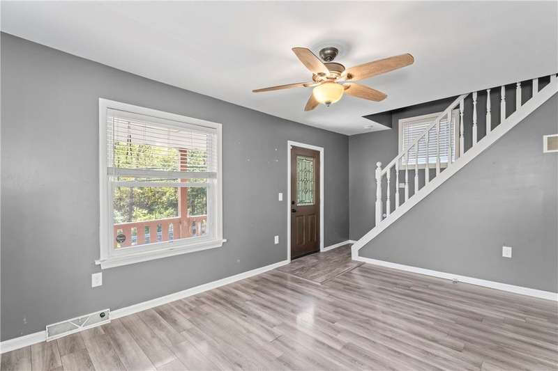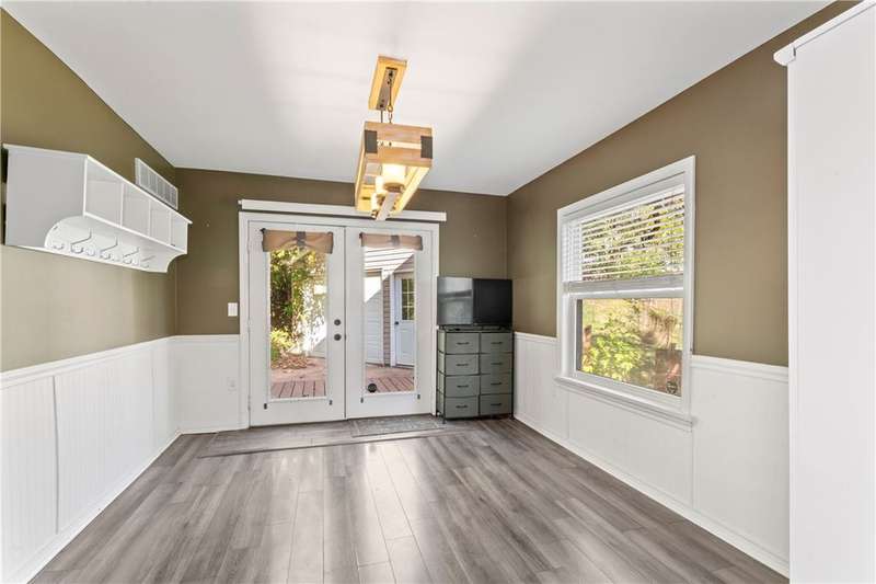 This sweet 2 bed, 1 bath home is updated throughout! The main floor has tasteful laminate flooring throughout. The livingroom flows seamlessly into the diningroom that has french doors leading to the patio, perfect for entertaining! Prep everything in the kitchen that has tons of cabinetry and counters and updated appliances too! Upstairs you'll find the same easy maintenance flooring in the ample sized bedrooms with nice closets space and ceiling fans. You'll love getting ready in the remodeled full bath with double vanity, bath and shower. Downstairs the finished area is a flex space, perfect for family room, playroom, office, etc. There is also a big storage closet and laundry/utility room. The basement is also plumbed for a full bath. A detached garage with man door access keeps your car and lawn equipment/toys out of the elements while a partially fenced in yard helps to keep the kids and fur babies in sight! A little bit of elbow grease will make this home sparkle again!