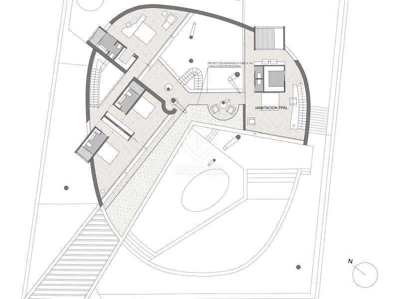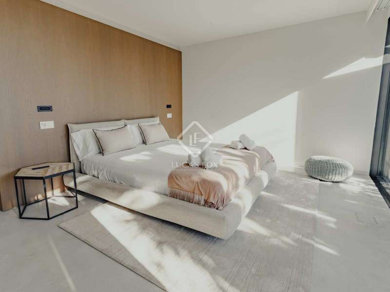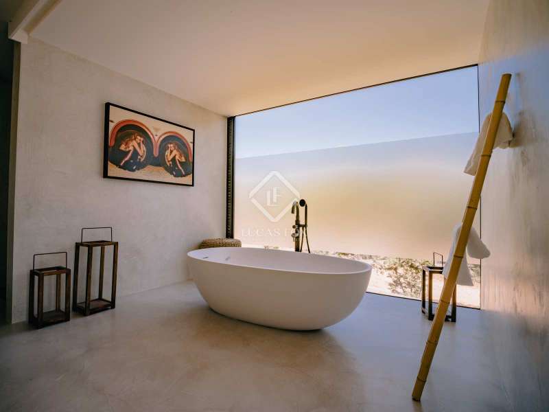 The main house consists of a master bedroom and two guest bedrooms on the upper level with beautiful unobstructed sea views and the open-plan living-dining area downstairs, a state-of-the-art kitchen and a spectacular patio terrace with a summer kitchen. The guest house includes a master suite with a living room and a separate staff apartment. A beautiful grass lawn garden surrounds the swimming pool, while an attractive cobbled pathway leads to the garage and lower grounds.
