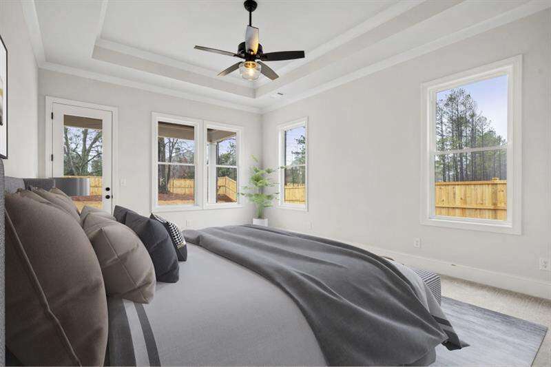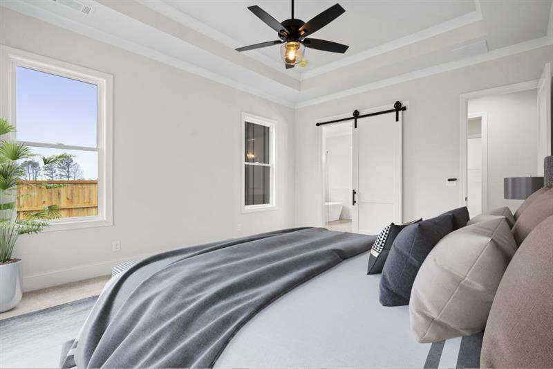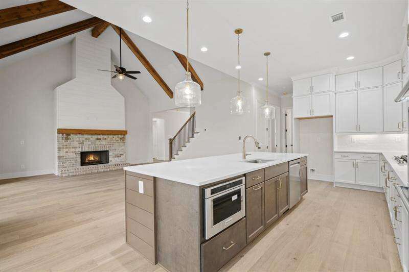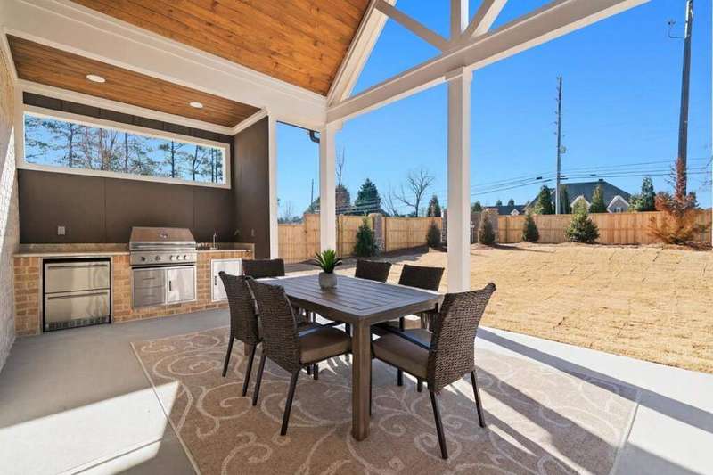 What an amazing opportunity to own this newly built, move-in ready home in Lassiter Cove for a fabulous price! Thoughtfully developed by Cotton States Properties, this four-sided brick home combines functionality and elegance, designed for both daily living and effortless entertaining. An expansive open floor plan featuring a gourmet kitchen with a stunning island overlooking the family room and outdoor kitchen-perfect for hosting gatherings. The spacious primary suite is a true retreat, showcasing a spa-inspired bathroom with a zero-entry, oversized shower. Additionally, the main level offers a secondary ensuite bedroom, ideal for guests or multigenerational living. Upstairs, you will find three additional bedrooms, two full baths (one is jack and jill) and a spacious loft, providing flexible space for a media room, playroom, or home office. This home also offers, ideal outdoor living with a fully fenced, private, flat backyard-perfectly poised and ready for a future pool; two additional covered patios, one with an outdoor kitchen with grill, refrigerator, sink and storage and one right off the great room with expansive luxury sliding glass doors. Designer details include cedar beams, shiplap accents, gorgeous woodwork, and a striking brick fireplace, wood blinds, custom closets, adding warmth and character throughout. This home delivers a move-in ready lifestyle in one of the area's most desirable communities, just moments from top schools, parks, and shopping.