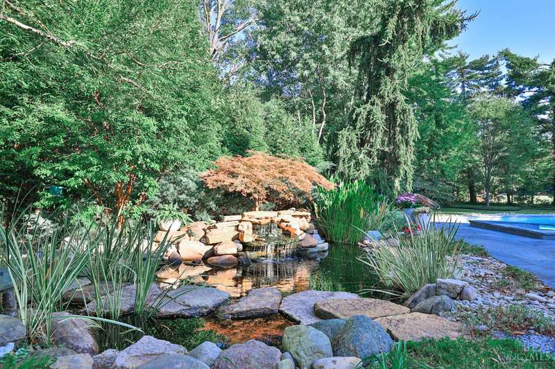 Under Contract Before Sent. Showcase kitchen with striking hexagonal vaulted ceiling, adjoining hearth room with stone fireplace, and convenient walk-through pantry plus Butler's pantry with wet bar. Impressive 2-story family room highlighted by rich woodwork. Luxurious new primary bath; all bedrooms offer ensuite baths. Curved staircase with overlook to dramatic 2-story entry. Finished lower level includes wet bar, exercise room, multiple activity areas, and full bath. Outdoor living shines with serene slate patio, sparkling pool, lush landscaping, and koi pond. All set on a level cul-de-sac lot offering quintessential Indian Hill living.