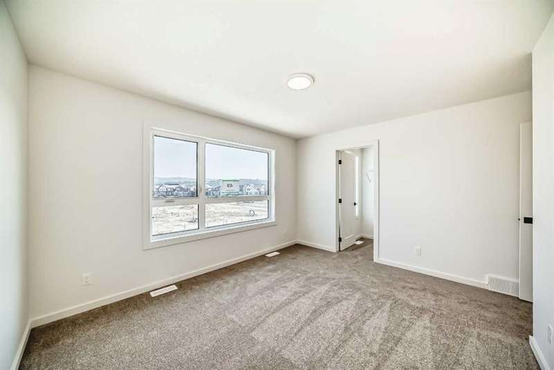 SOME HOMES DON’T JUST CHECK BOXES—THEY REWRITE WHAT “MOVE-IN READY” SHOULD MEAN. Welcome to 33 Royston Grove NW, where the Jefferson model from Homes by Avi proves you can build for comfort and conscience in the same breath. Tucked inside Rockland Park—a community rooted in sustainability and connection—this home feels calm, grounded, and quietly ahead of its time. The main floor opens with a FLEX ROOM right off the foyer—ready to moonlight as an office, library, or the spot where backpacks go to disappear. The kitchen takes centre stage, anchored between the front and back of the home so everyday traffic moves without collision. It’s equipped with a 30" GAS COOKTOP, WALL OVEN, BUILT-IN MICROWAVE, and CHIMNEY HOOD FAN. QUARTZ COUNTERS, a SILGRANIT UNDERMOUNT SINK, and 50" UPPER CABINETS keep the look crisp and clutter-free, while the dining nook connects to an 11' × 10' REAR DECK through an upgraded three-panel patio door. The great room’s FIREPLACE FEATURE WALL pulls the whole main floor together—a little drama, a lot of comfort. Upstairs, a bonus room gives the household breathing room between the PRIMARY RETREAT and two secondary bedrooms. The ensuite earns its upgrades with a SOAKER TUB, GLASS-AND-TILE SHOWER, DUAL-SINK VANITY, and a WALK-IN CLOSET big enough to end the seasonal rotation ritual. Both secondary bedrooms have their own walk-in closets, and the UPPER LAUNDRY ROOM includes a folding counter—because piles happen. The unfinished basement with 9' FOUNDATION WALLS and SEPARATE SIDE ENTRY is ready for whatever version of “next” comes along. Built for the long game, this home layers its durability and efficiency from the inside out: UPGRADED JAMES HARDIE SIDING, R-19 BASEMENT INSULATION, R-50 ATTIC, SOLAR ROUGH-IN CONDUIT, and EV CHARGER ROUGH-IN all contribute to its BUILD GREEN REGISTRATION and future-proof credentials. Rockland Park isn’t just another new northwest community—it’s Calgary’s first MASTER-PLANNED WELLNESS COMMUNITY, built around connection to nature and long-term sustainability. Tree-lined streets lead to a PRIVATE RESIDENTS’ CLUBHOUSE with a POOL, FITNESS CENTRE, and event spaces, and a network of pathways, playgrounds, and scenic lookouts ties it all together. It’s a community where sustainability isn’t a slogan—it’s a standard. It’s not just about living well—it’s about living smart, in a home that gets the assignment. • PLEASE NOTE: Photos are of a DIFFERENT Spec Home of the same model – fit and finish may differ. Interior selections and floorplans shown in photos.
