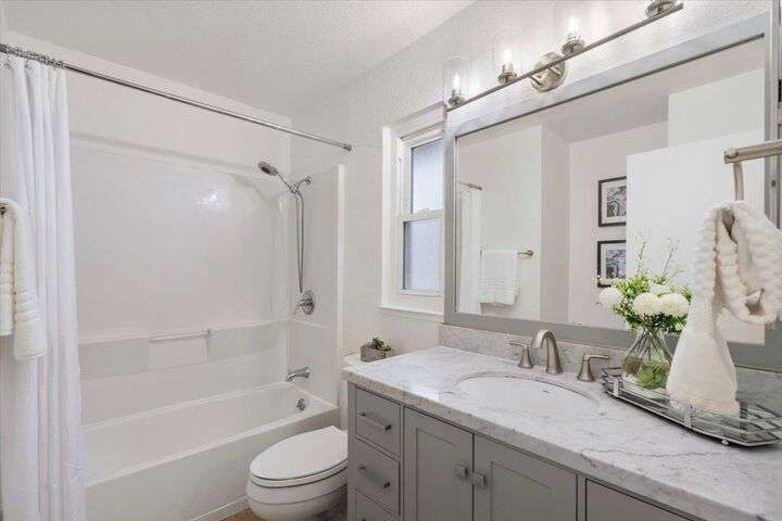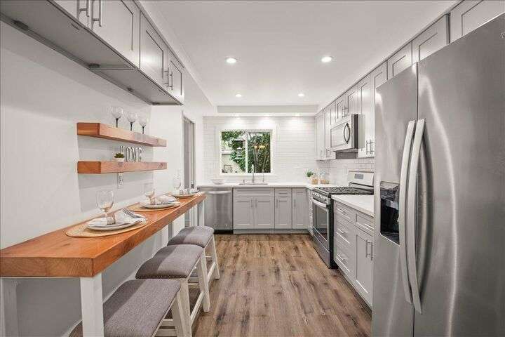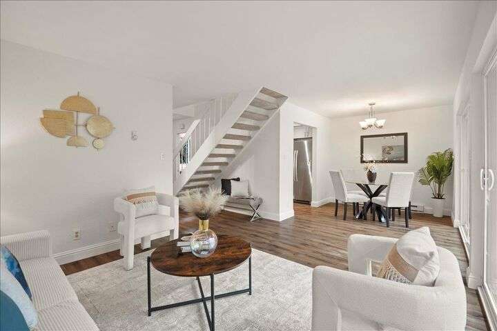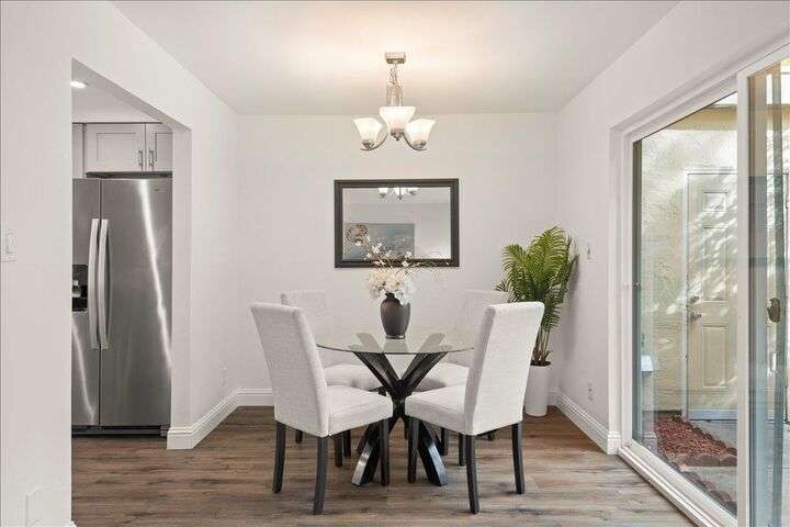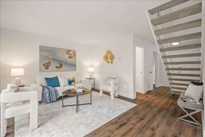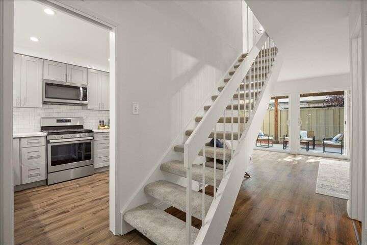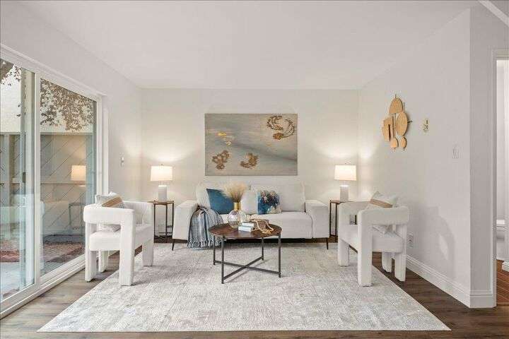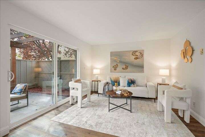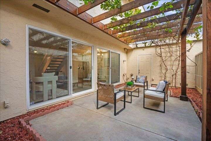Welcome to this beautifully updated 3 bedroom, 1.5 bath home. The bright and open living room features modern finishes with direct access to a private patio, perfect for relaxing or entertaining. The bright and open kitchen offers stainless steel appliances, sleek cabinetry, and a light-filled dining area. Additional highlights include a freshly painted interior and brand-new beige carpeting. Situated in a well-maintained community with charming pathways and lush landscaping, this move-in ready home offers the ideal blend of comfort, style, and convenience. Plenty of parking with a two car garage, three street parking tags and additional oversized trailer accommodations available. Located in a established community with a pool and no through traffic. Within convenient proximity to parks, shopping and restaurants. Easy commute access to Hwy 101/85/87.