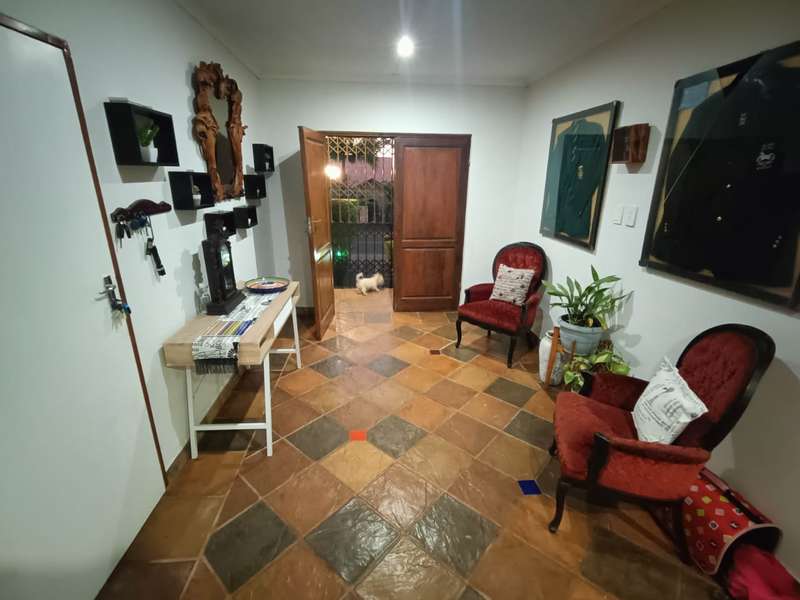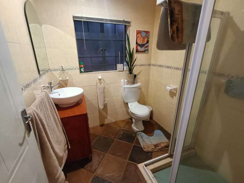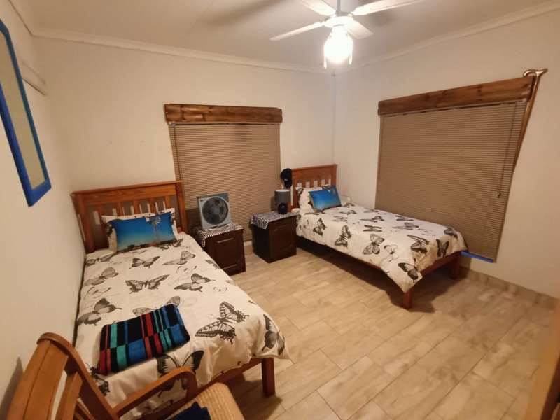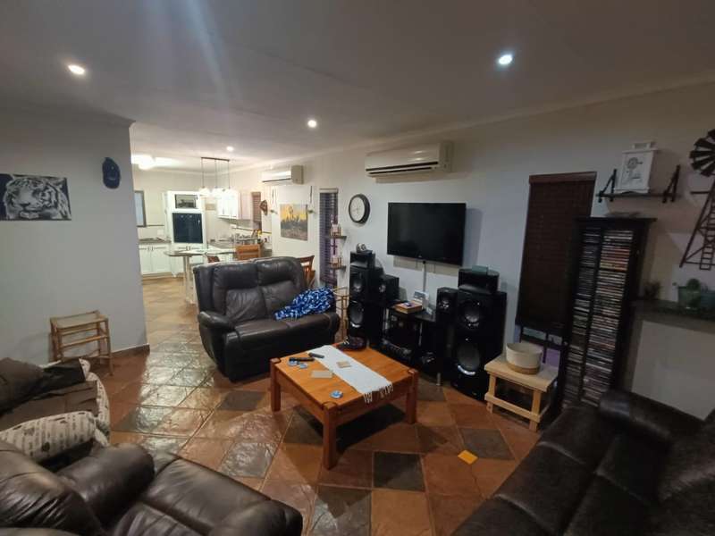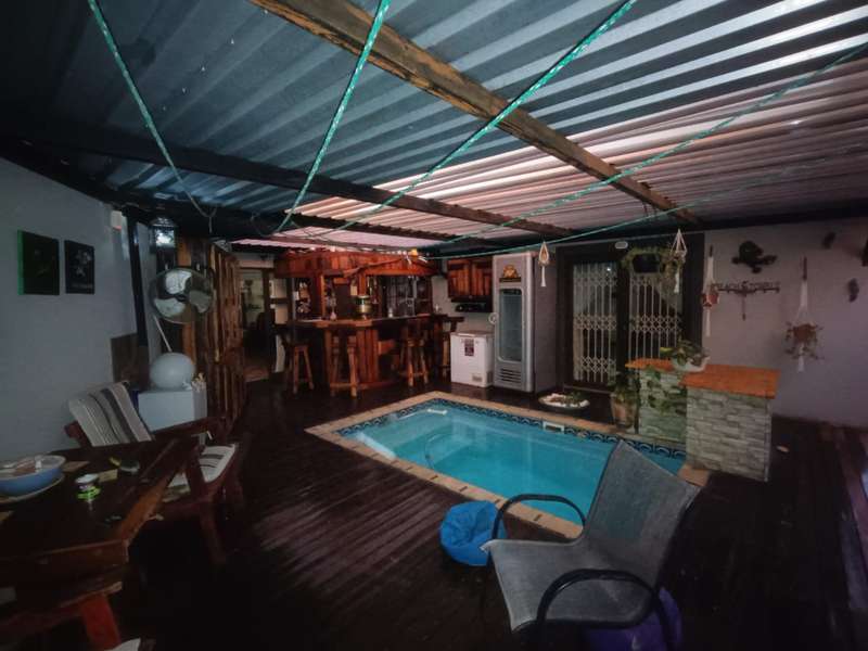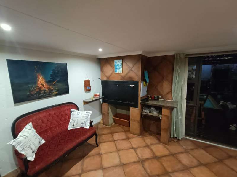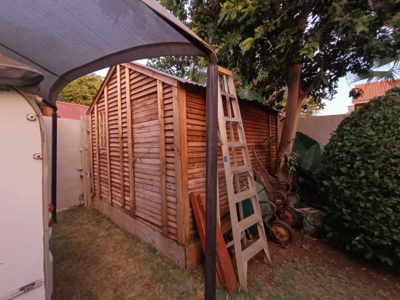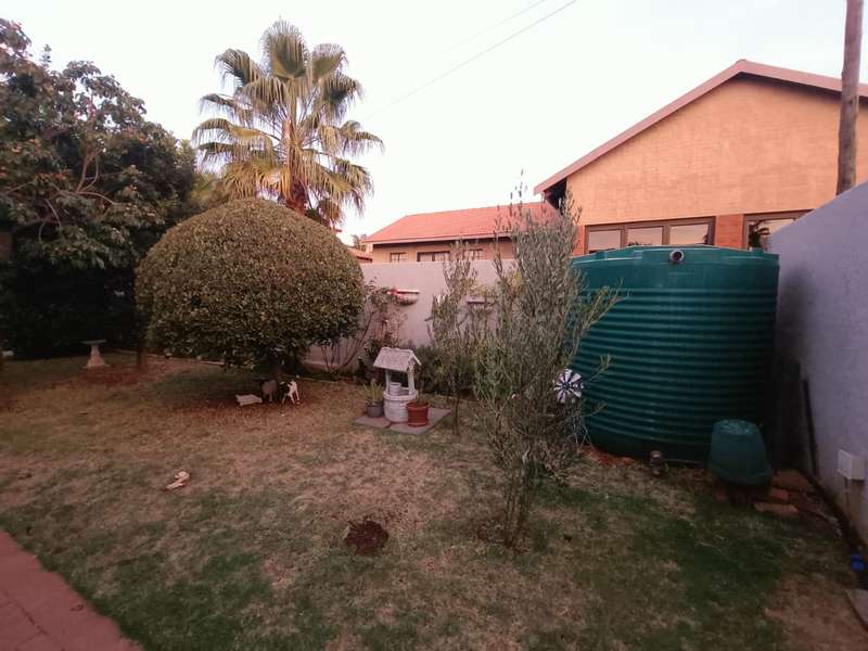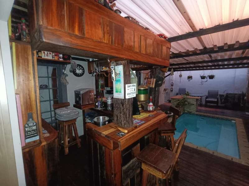 This house is situated in the heart of Safari gardens in a nice quiet street. As you enter the house, you get this warm welcome feeling. The house has 3 bedrooms and 2 bathrooms. The main bedroom has an en-suite bathroom and a walk-in closet. There is a spacious open plan kitchen, separate scullery and living room, with air conditioning for comfort, which provides endless entertainment for your whole family. The living area also has a build-in braai for the cold winter days. When you set foot outside the lounge, there is a under roof bar, swimming pool and build-in braai. The see-through roof ensures the feeling to still feel outside, while the weather won’t affect you. The property is equipped with a backup water system, with a Jojo tank, a pressure pump, and a irrigation system. There is a double garage with extra storeroom and also a double carport. There is also a Wendy to store al your garden equipment. Call today for a viewing to your new home!